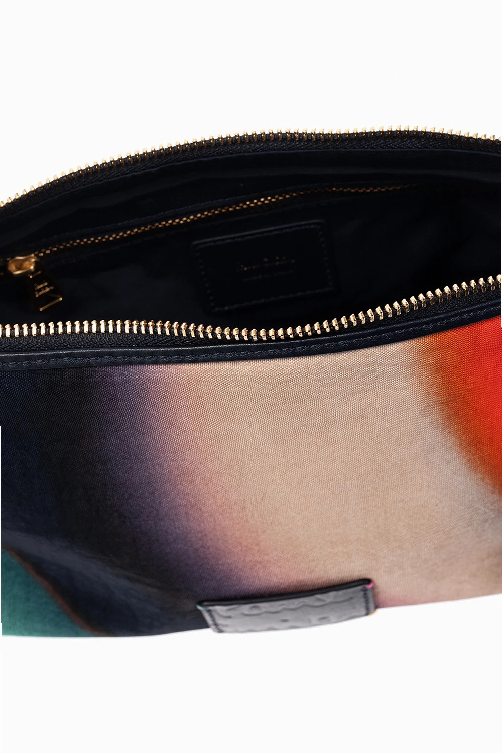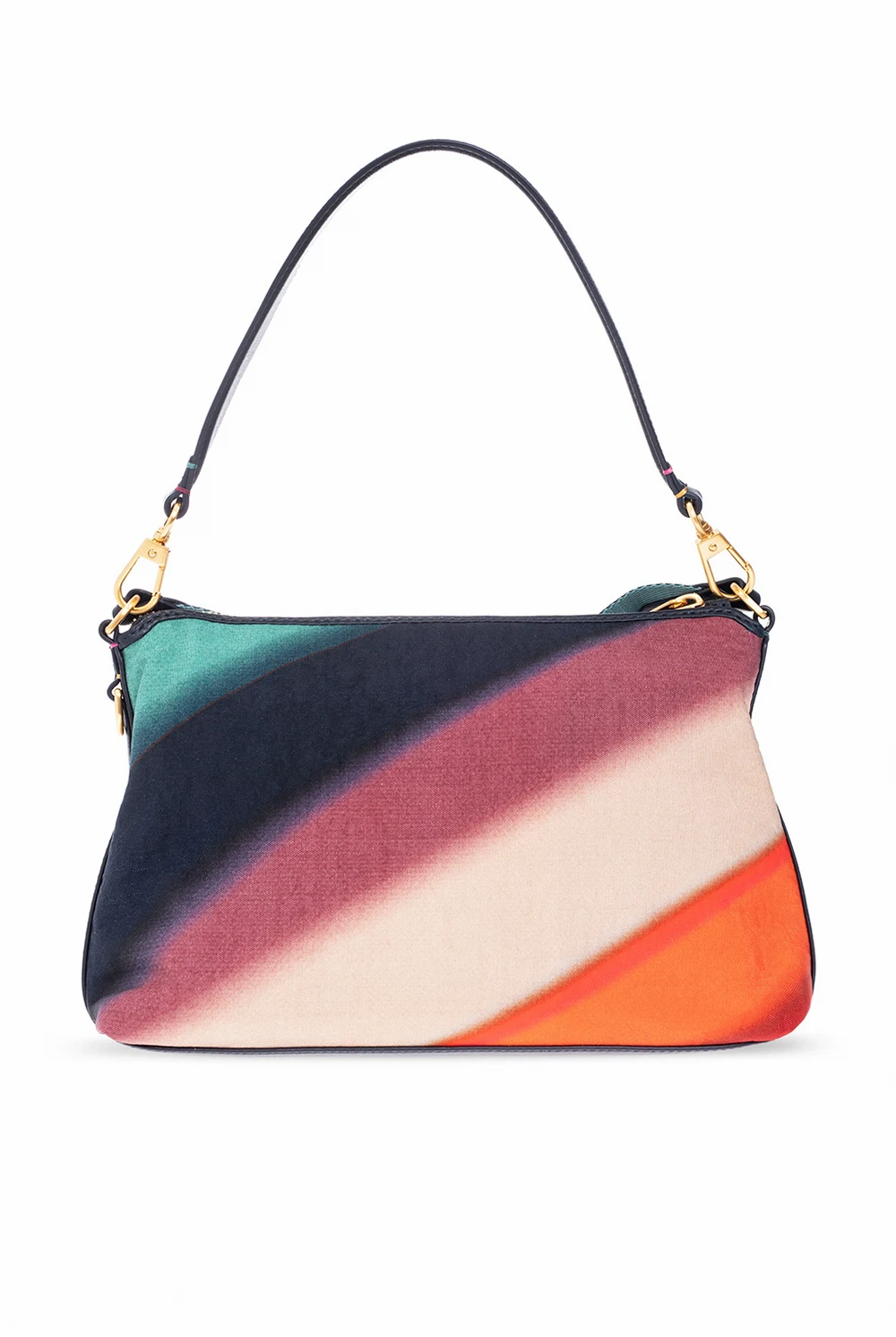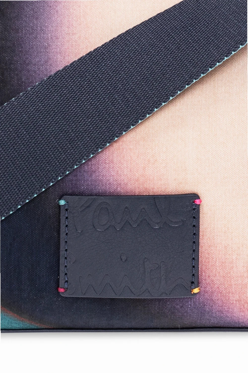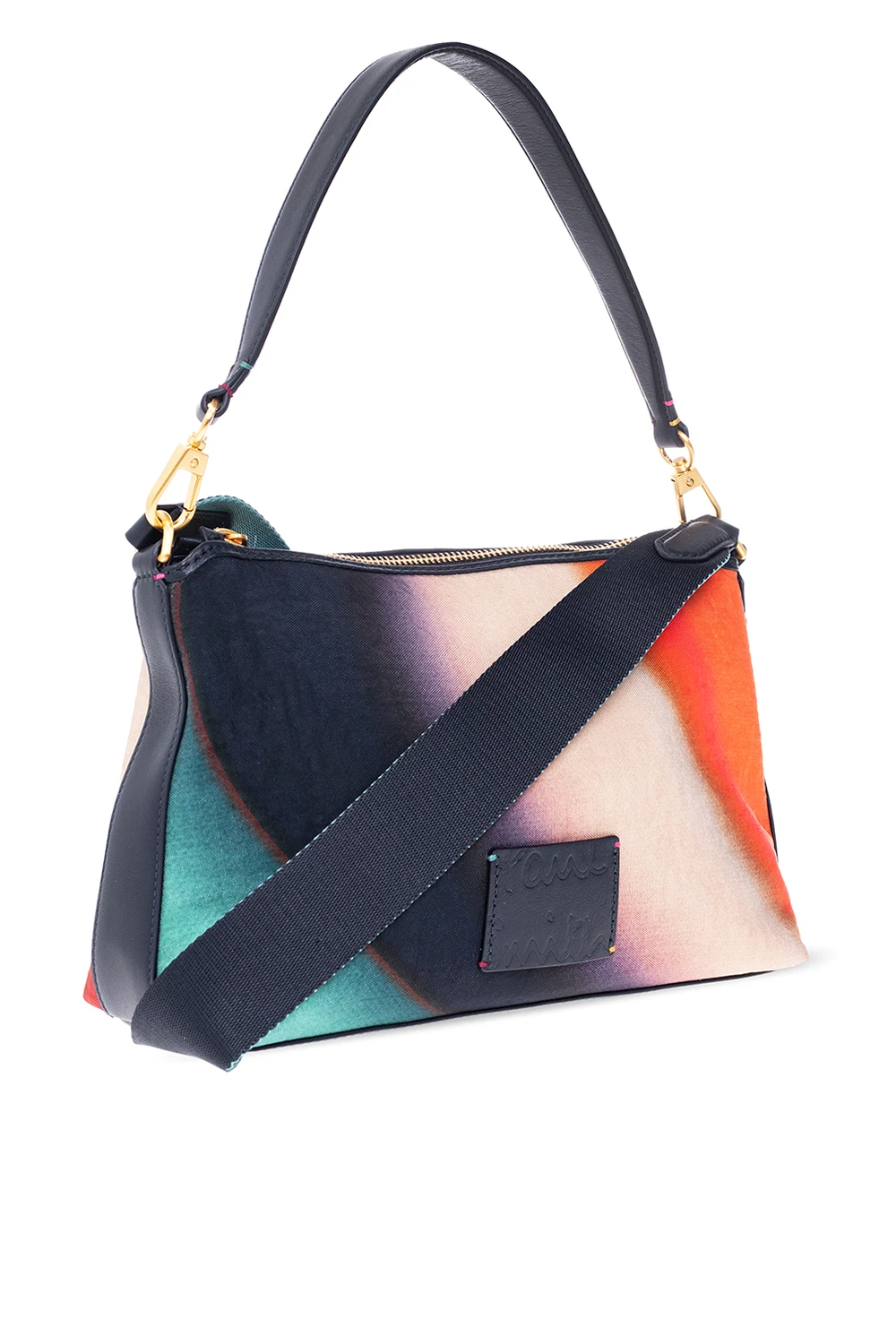 Mulitcolored shoulder bag from Paul Smith. Trimmed with navy cow leather, this model features a zip fastening, multicolored Spray Swirl pattern, leather logo-embossed patch, detachable half-round handle and adjustable strap, gold-tone metal hardware and one internal compartment with one zip pocket.