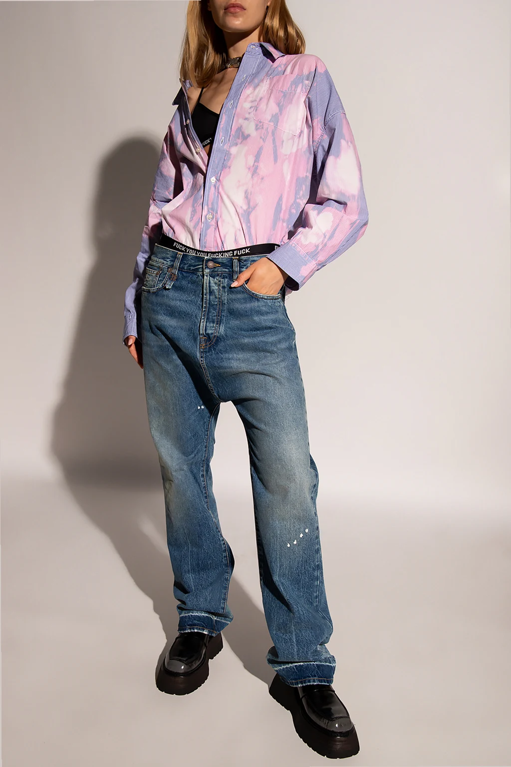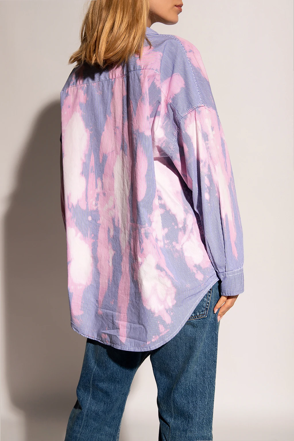 Blue, pink and white shirt from R13. Crafted from tie-dyed cotton with all-over stripes, this style features button fastenings and two slip pockets.