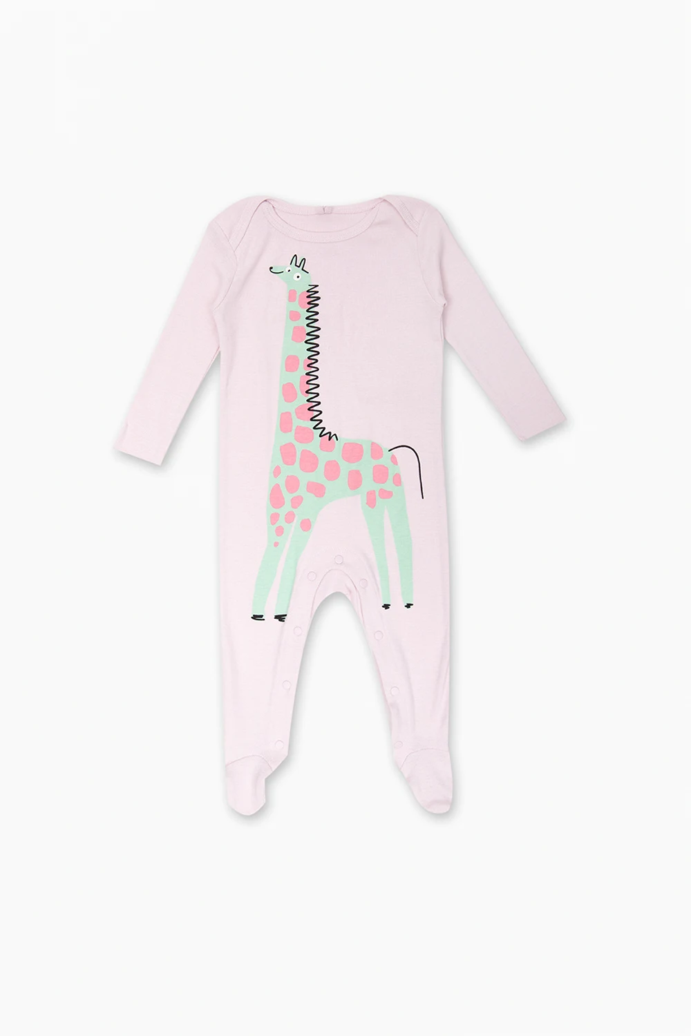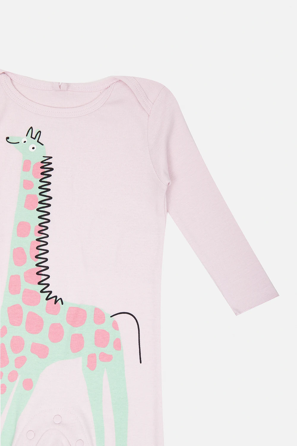 Light purple baby set from Stella McCartney Kids. Crafted from organic cotton and decorated with a colourful giraffe print, it includes a snap-fastened bin and a babygrow featuring a round neck, snap closures, long sleeves and long legs with anti-skidding socks.
