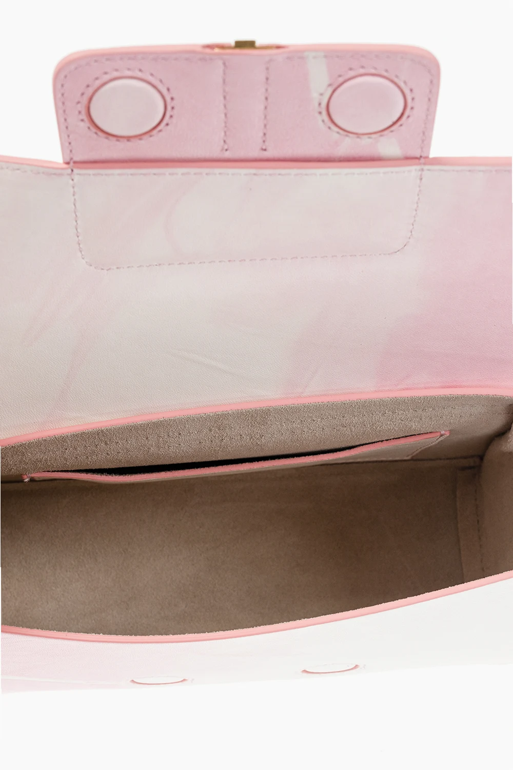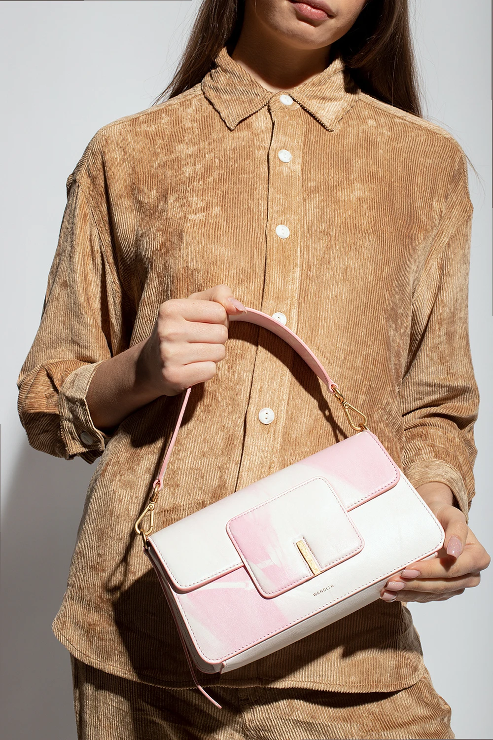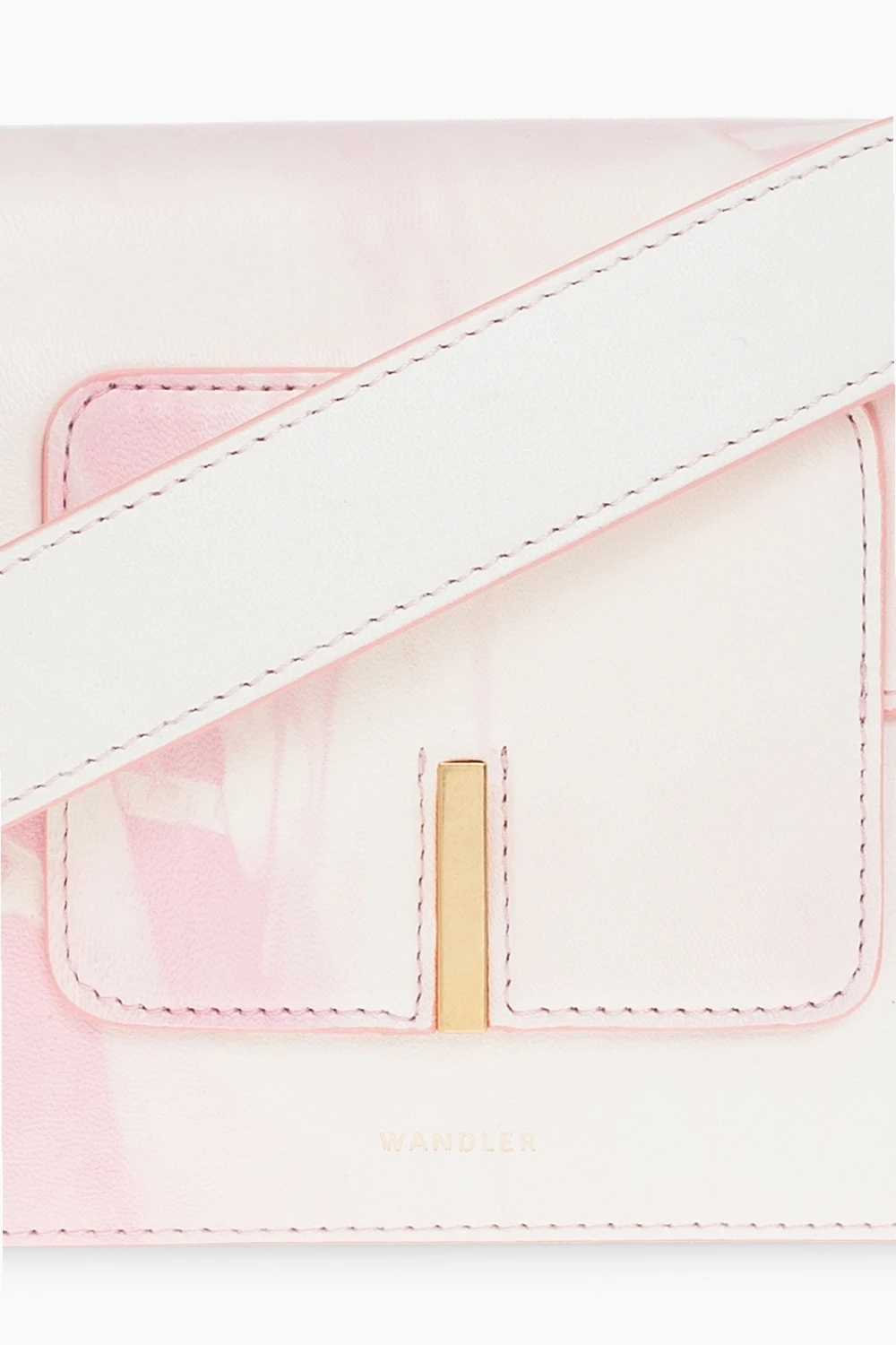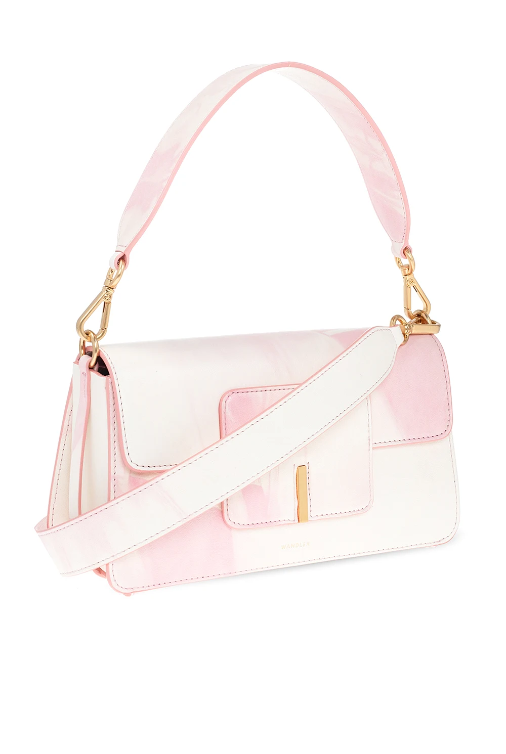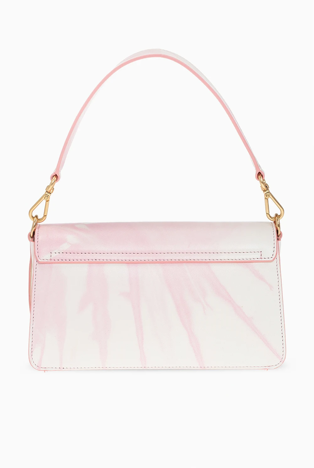 Pink and white ‘Georgia’ shoulder bag from Wandler. Made of calf leather, this model fastens with snaps is decorated with a tie-dye effect, metal appliqué and gold-tone metal hardware. It is complete with a half-round handle, adjustable strap, gold-tone metal hardware and one internal compartment with beige lining and one slip pocket.