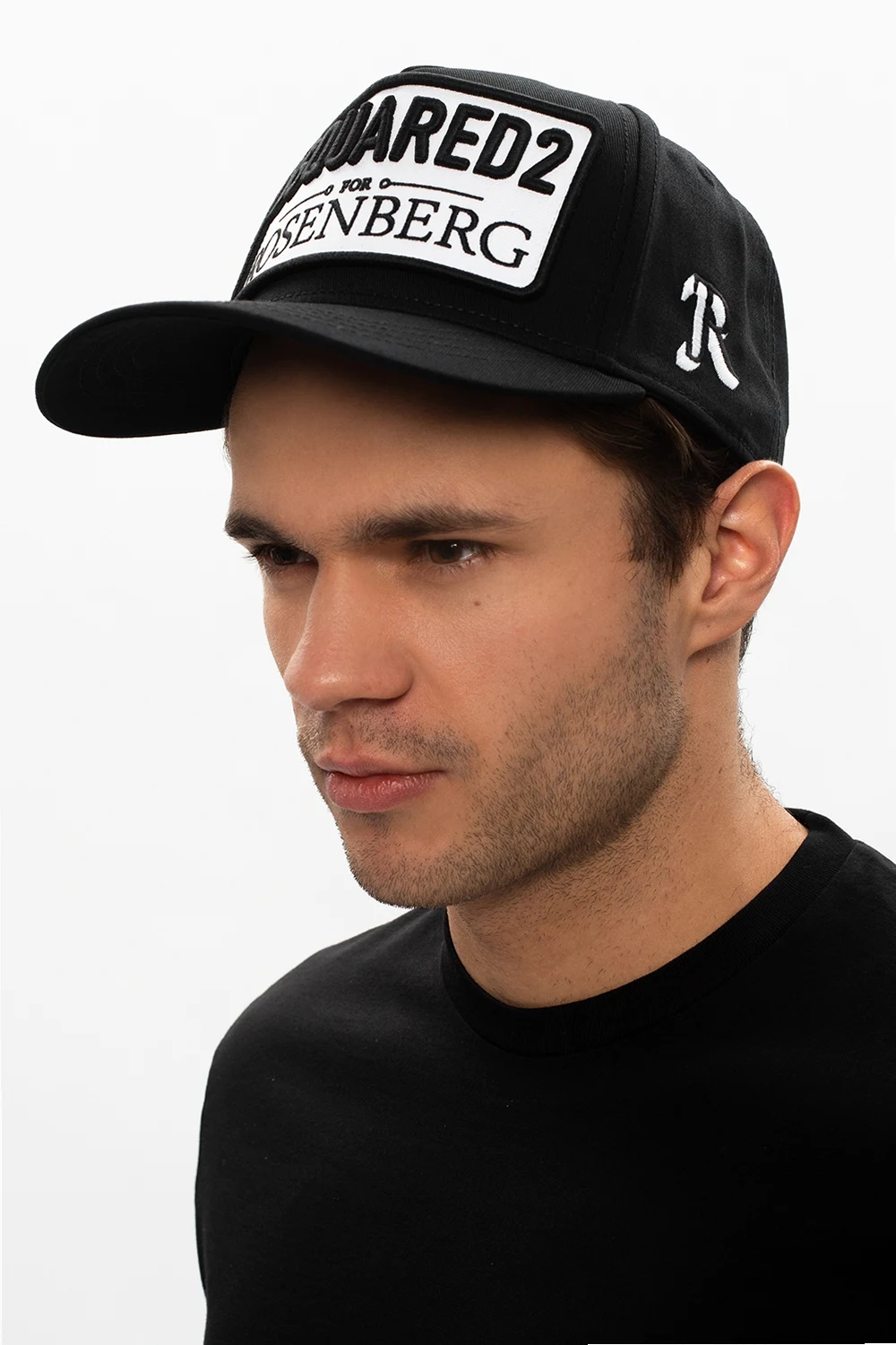 Black baseball cap from Dsquared2 x Rosenberg x VITKAC – three brands in one. Designed exclusively for the ‘Dsquared2 for Rosenberg’ limited collection, this cotton-crafted item was emblazoned with a patch and black and white embroidery with logo and outfitted with an adjustable strap on the back.