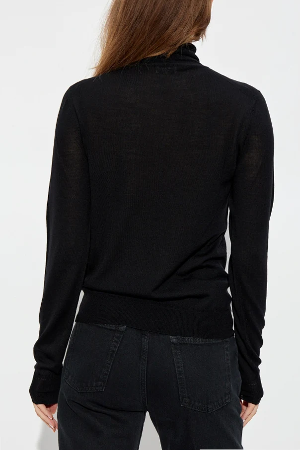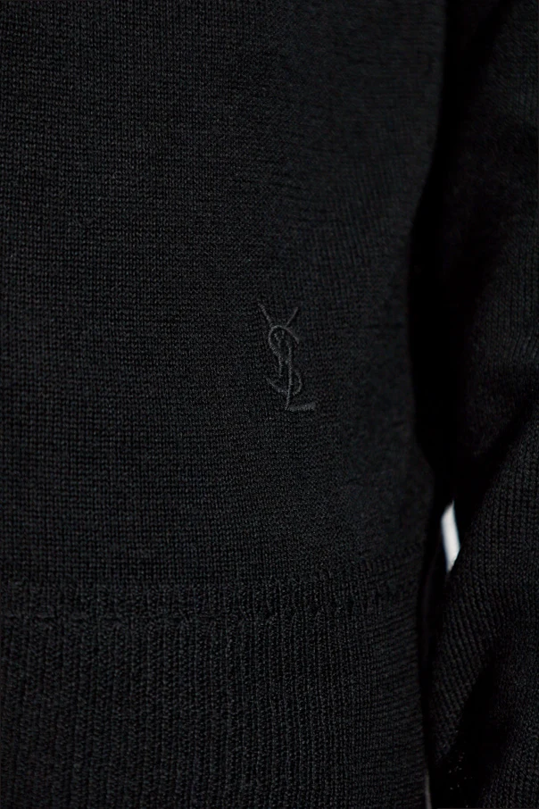Hier ist ein eleganter, schwarzer Wollrollkragenpullover aus der exklusiven Bekleidungskollektion. Das Produkt der Marke Saint Laurent ist eine perfekte Kombination aus Klassik und Moderne, was es zur idealen Wahl für Liebhaber des raffinierten Stils macht.