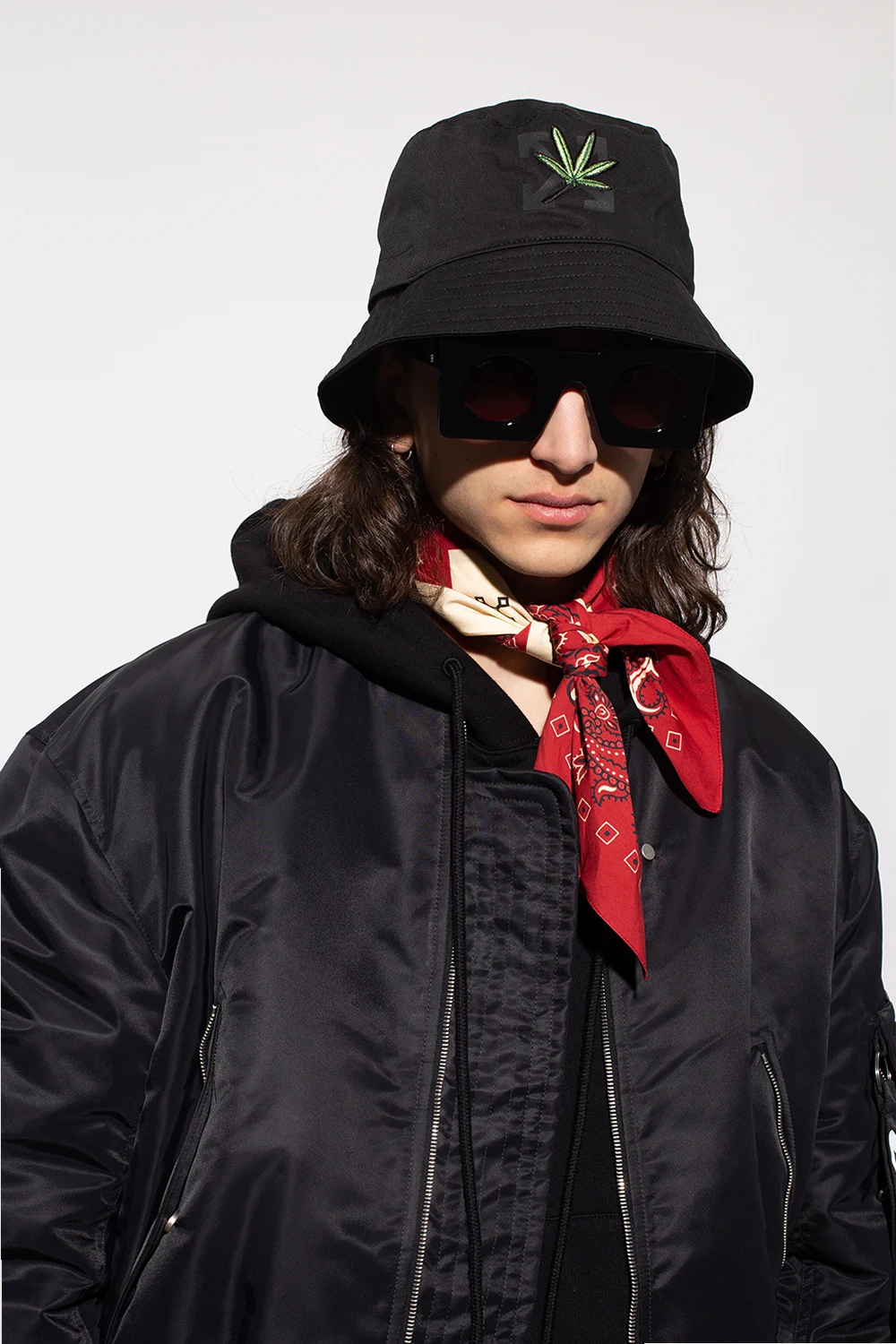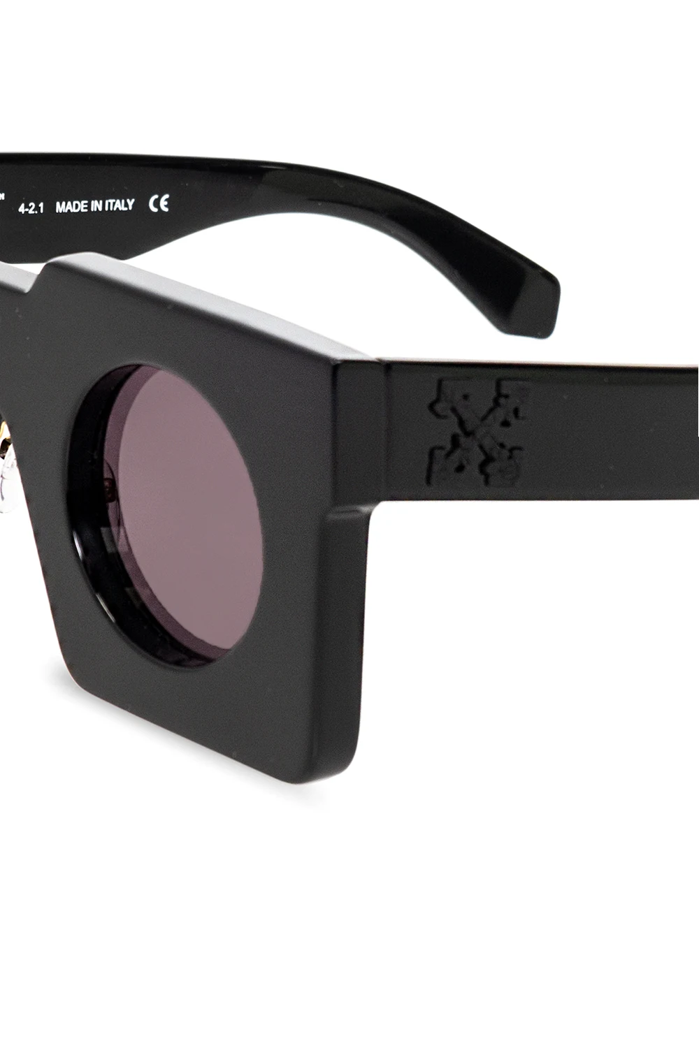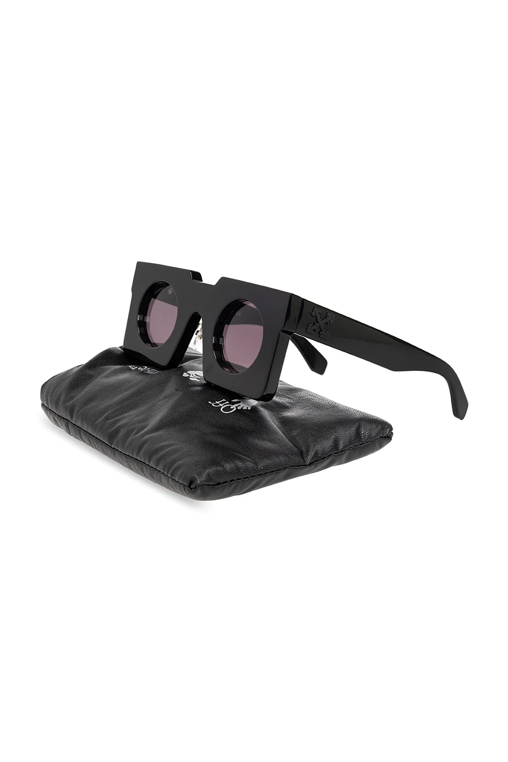 Black ‘The Pantheon’ sunglasses from Off-White. With square frames, this model features tactile branding on the temples and round black lenses which ensure 100% UV protection. Case included.