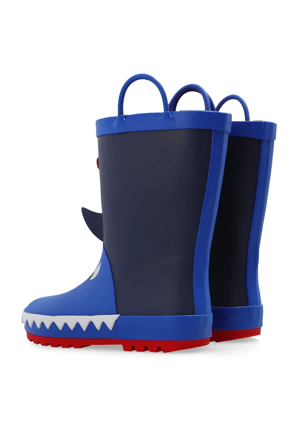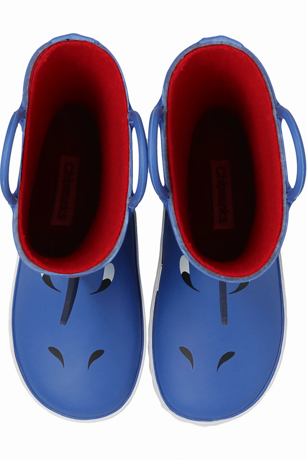 Navy, blue and red ‘Waldo walrus’ shirt from Chipmunks. Decorated with an animal motif and raised logo, this pair features textile lining, red rubber sole and two half-round straps for an easy on and off.