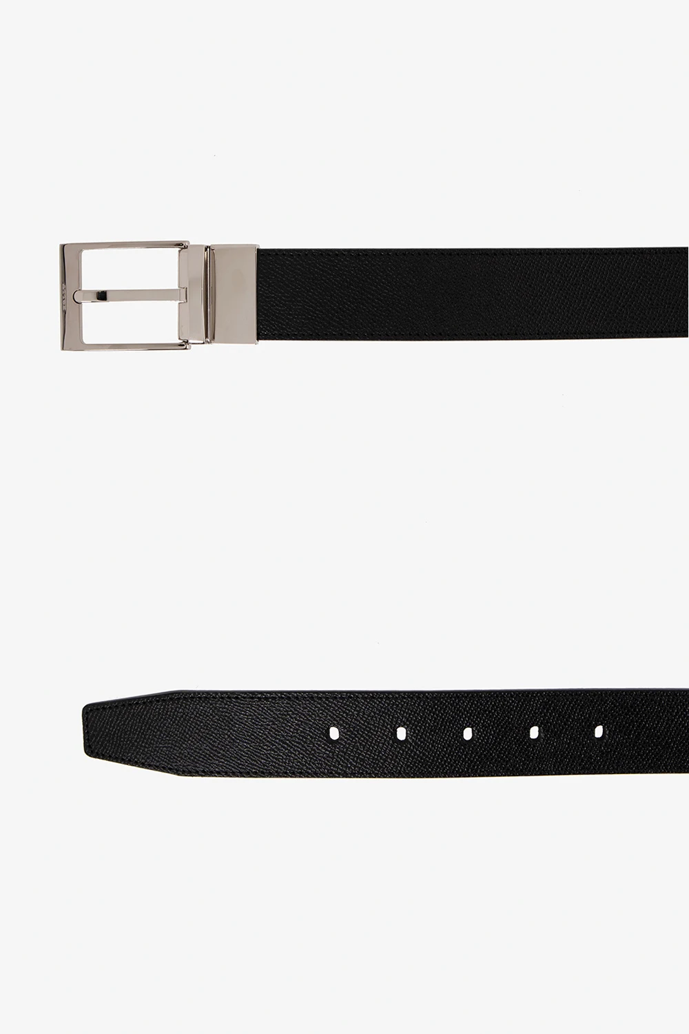 Gift box from Bally. It includes a reversible belt in black and brown leather with a silver-tone metal buckle and a black folding wallet in leather featuring silver-tone logo hardware and two bill compartments, two slip pockets and eight card slots inside.