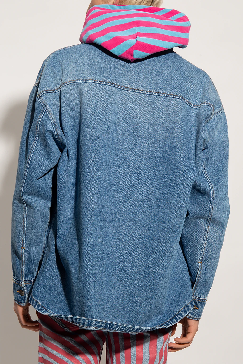Blue oversize denim shirt from 424. Fastened with buttons, this garment features button fastenings, two buttoned flap pockets and long sleeves.