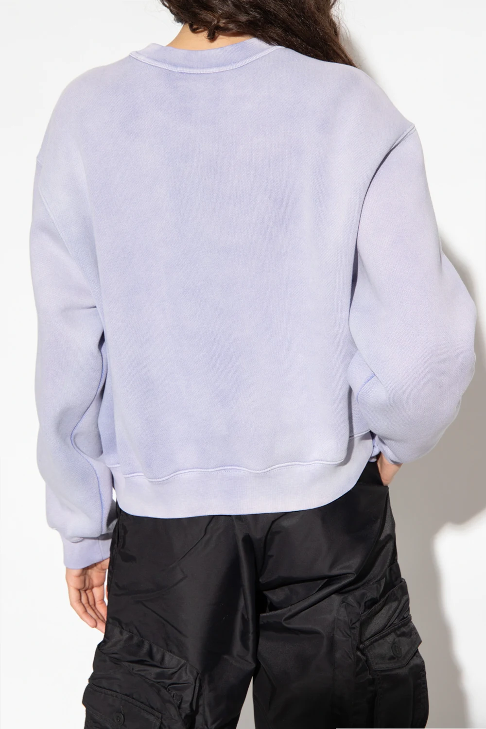 Light purple sweatshirt with a vintage effect from T by Alexander Wang. Made of cotton, this loose-fitting design features a rubberized logo in light grey and ribbed trims at the crew neck, hem and cuffs.