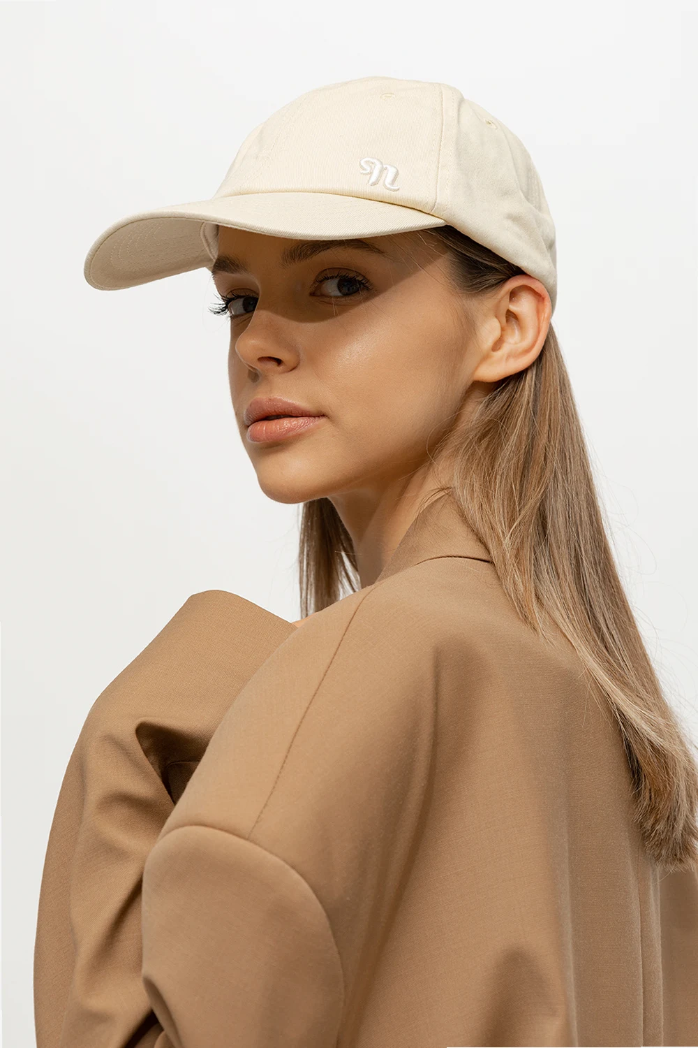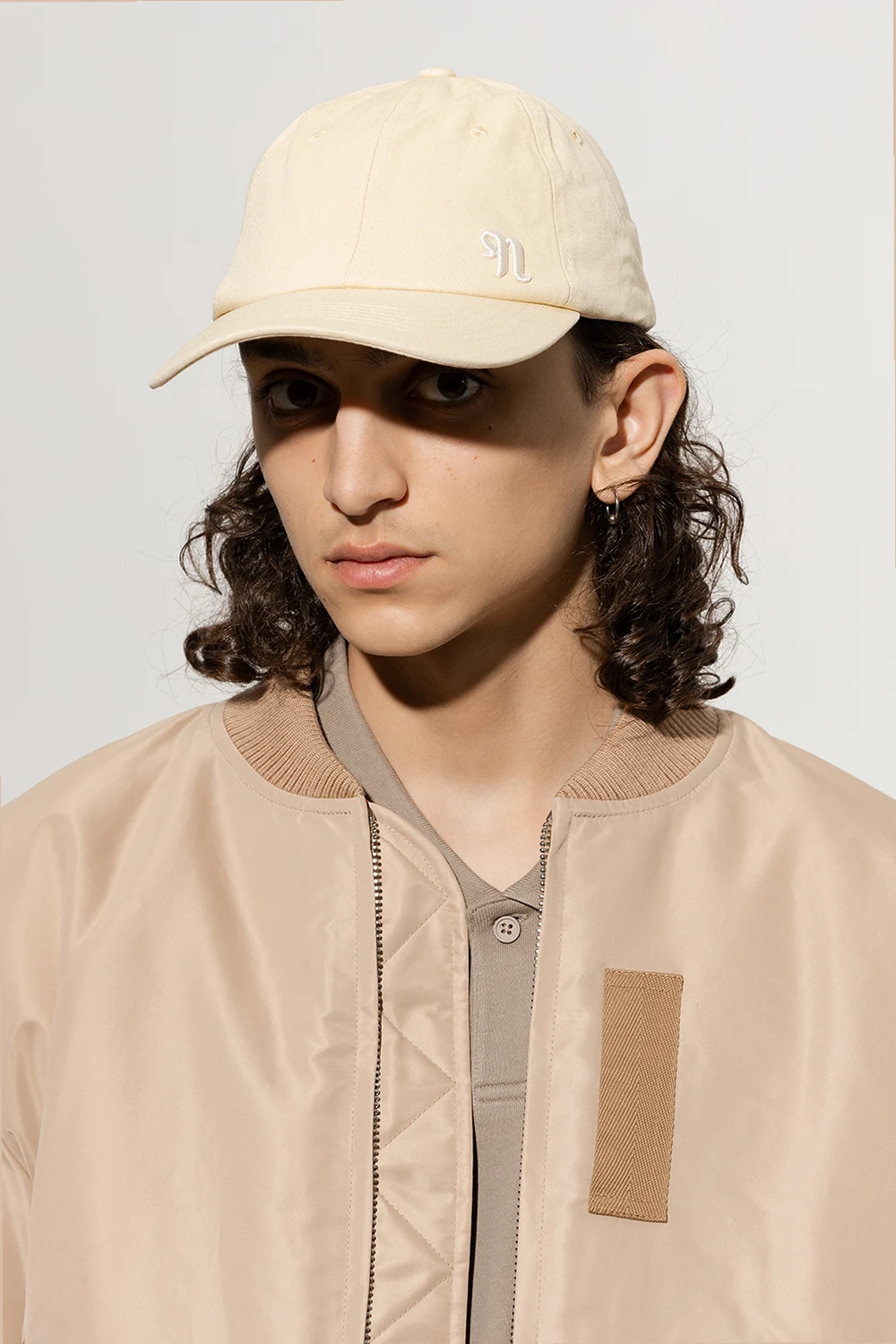 Cream ‘Amoy’ baseball cap from Nanushka. Crafted from organic cotton, this item features an embroidered logo on the front and a back adjuster.