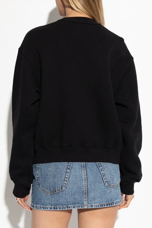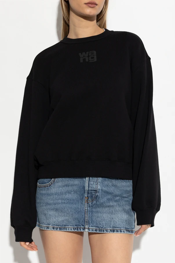 Wir präsentieren das Sweatshirt mit Logo - ein raffiniertes Kleidungsstück aus der modernen Kollektion T by Alexander Wang . Dieses schwarze Sweatshirt zeichnet sich durch einen klassischen, lockeren Schnitt, lange Ärmel und einen Rundhalsausschnitt aus, was es zu einer hervorragenden Wahl für Liebhaber von Einfachheit und urbanem Stil macht.