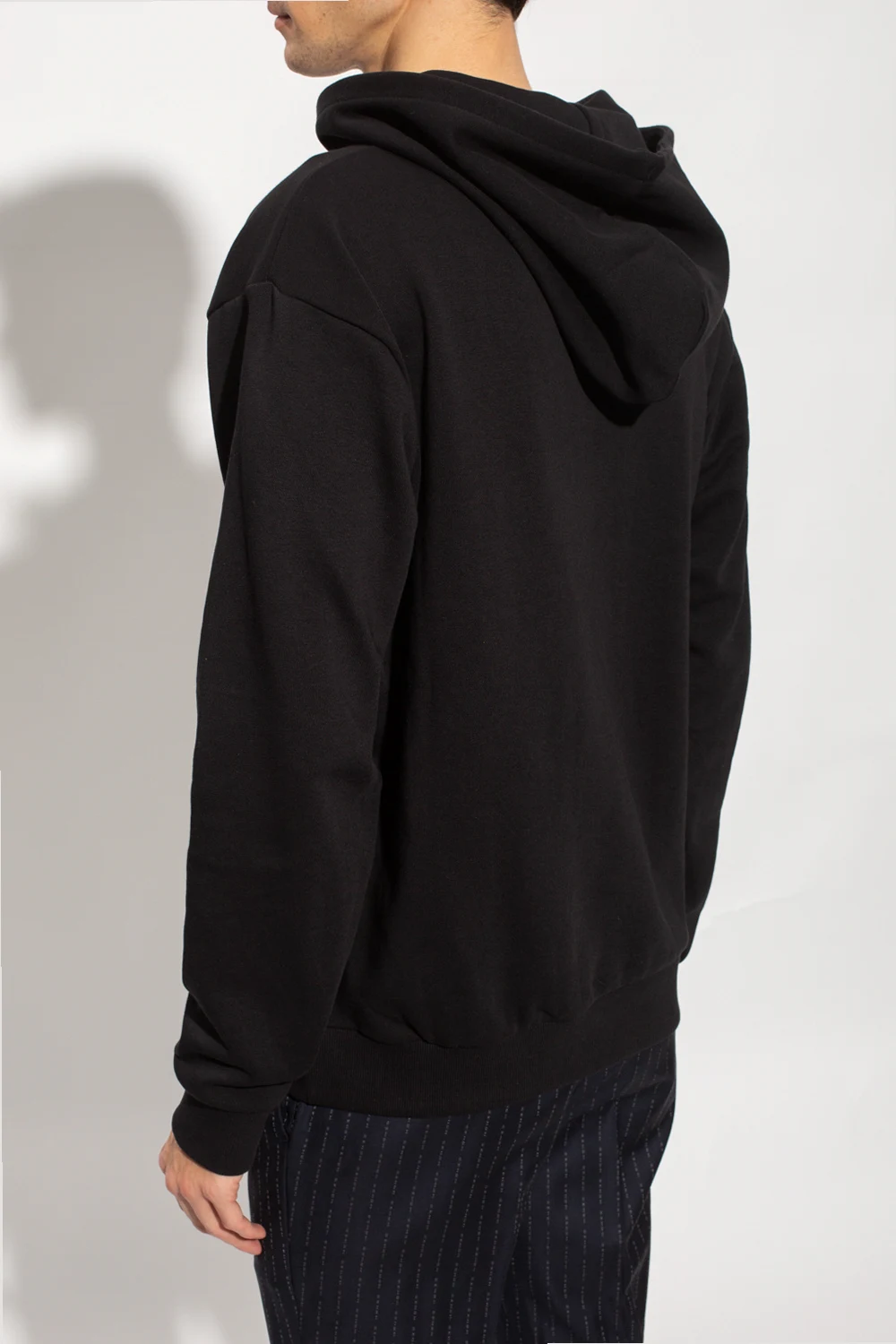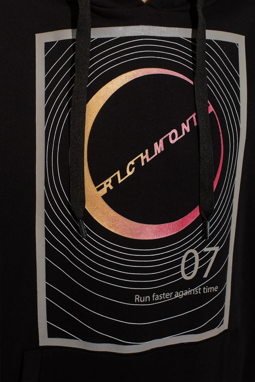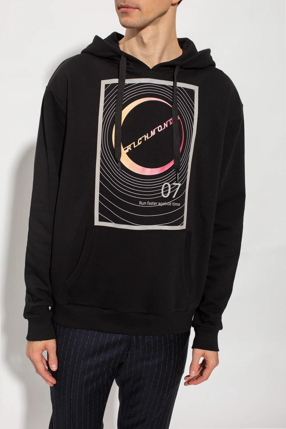 Black hoodie from John Richmond. Made of cotton, this garment features a multicolored logo print, drawstring hood, slip pocket and ribbed trims at the hem and cuffs.