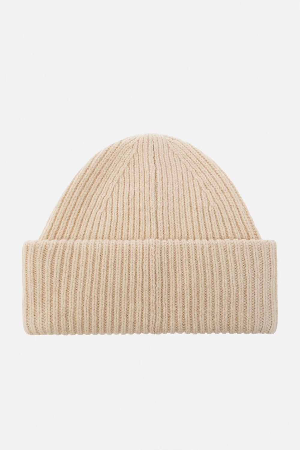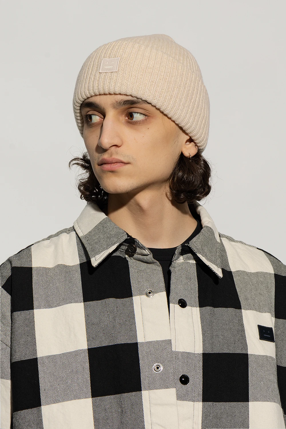 Cream beanie with a logo patch from Acne Studios. Made of wool.