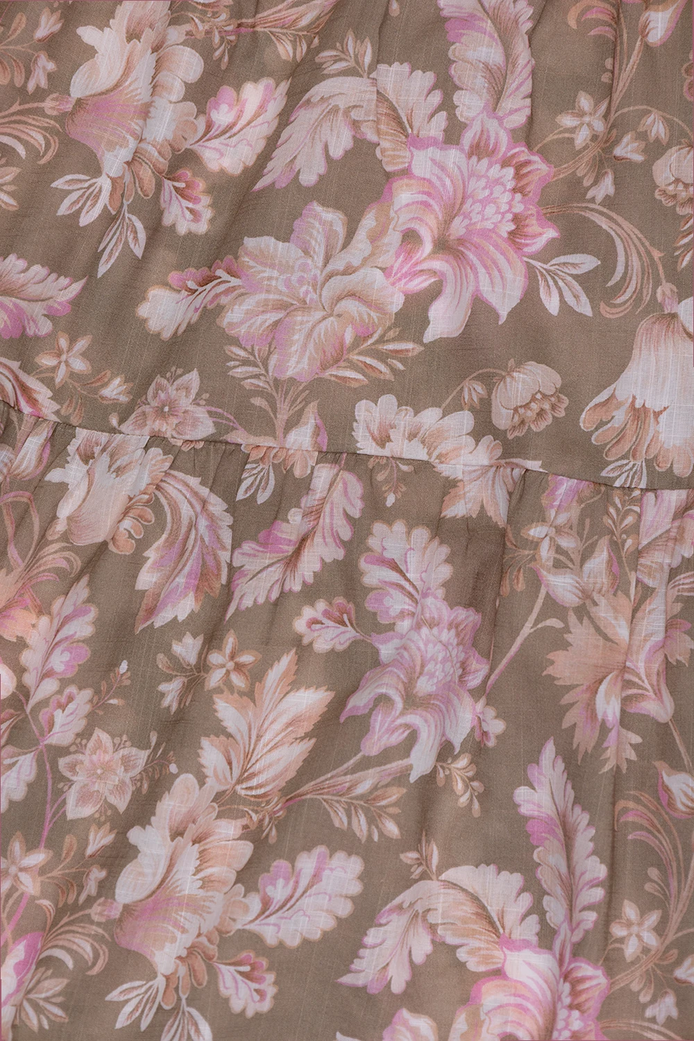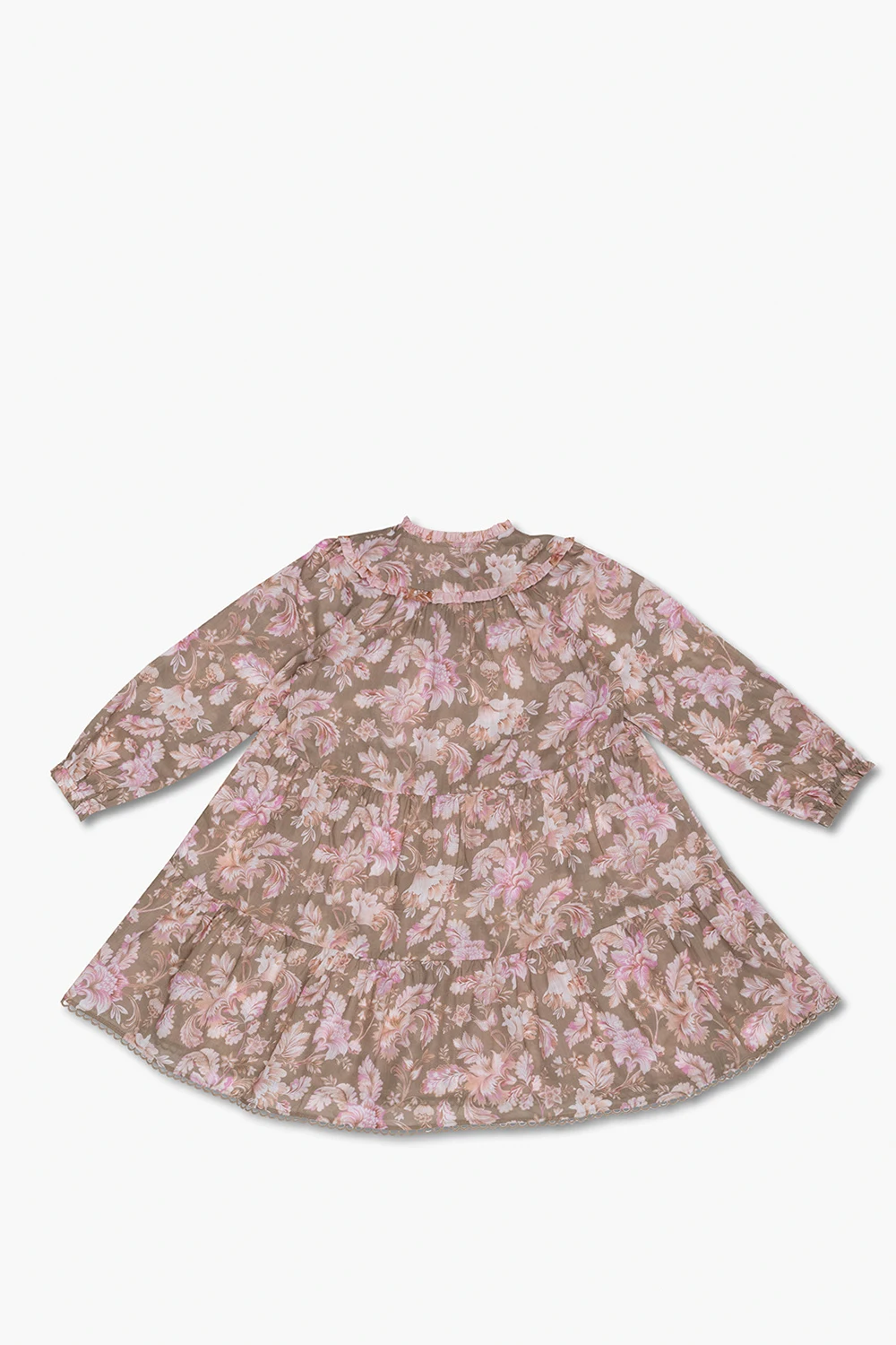 Green, beige and pink ‘Jeannie’ dress from Zimmermann Kids. Made from cotton, this style showcases a floral pattern, long puff sleeves with elasticated cuffs, a distinctive neck tie fastening and a flared hem.