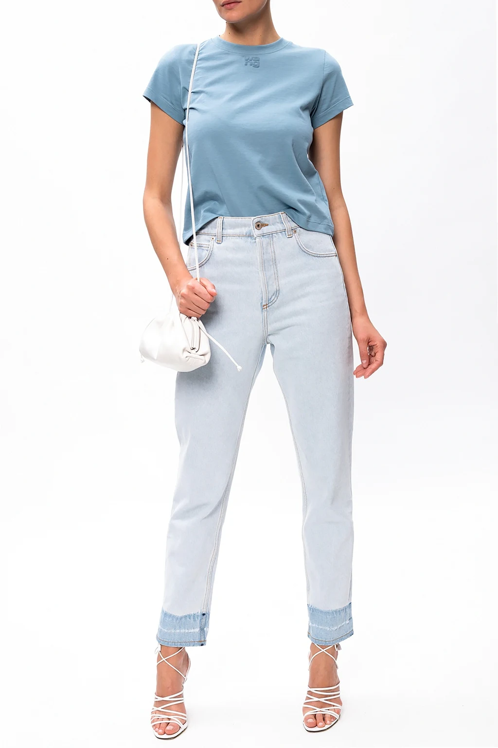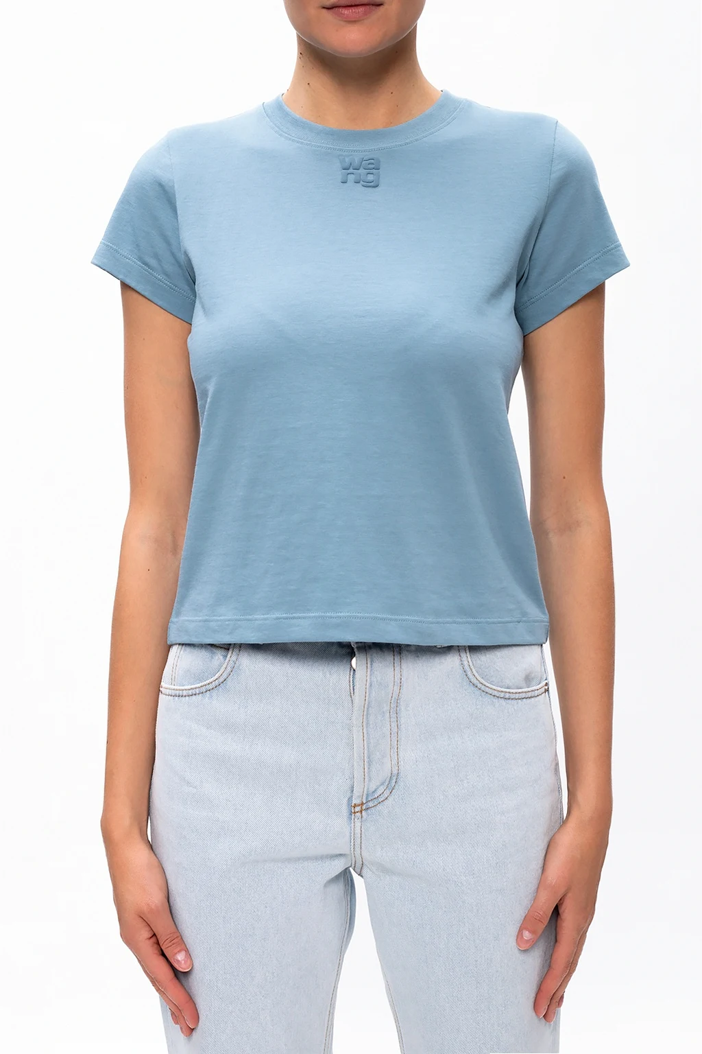 Blue T-shirt from T by Alexander Wang. Crafted from cotton, this short sleeve design is decorated with a blue logo print.