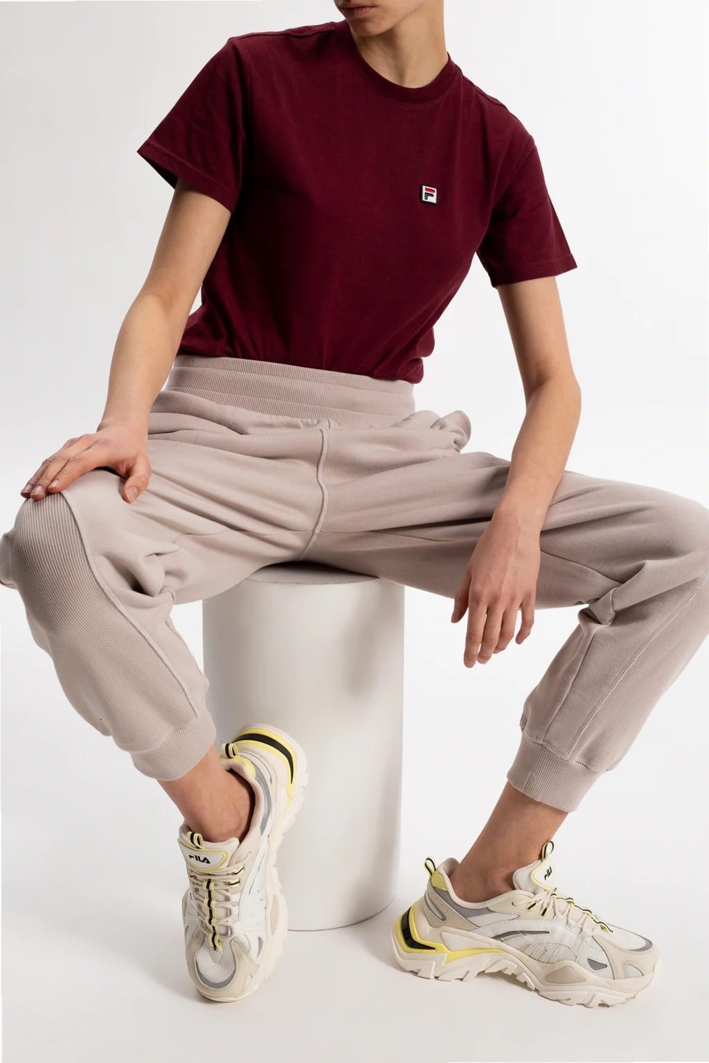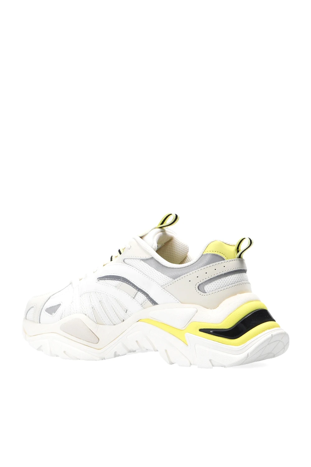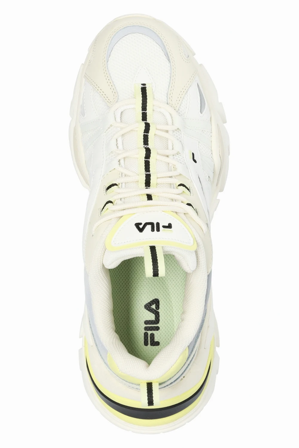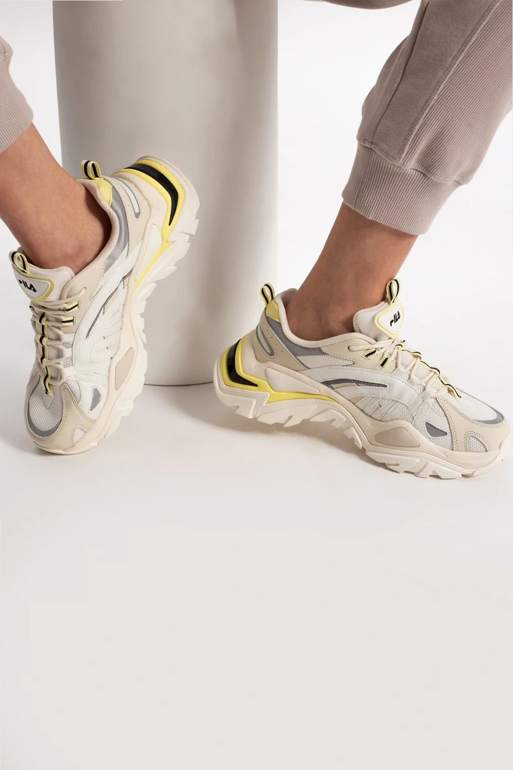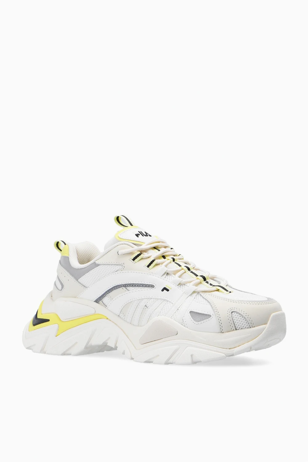 Cream and yellow ‘Electrove CB’ sneakers from Fila. Boasting silver-tone reflective details and a logo patch on the tongue, this lace-up pair is complete with mesh panels and a white rubber sole.