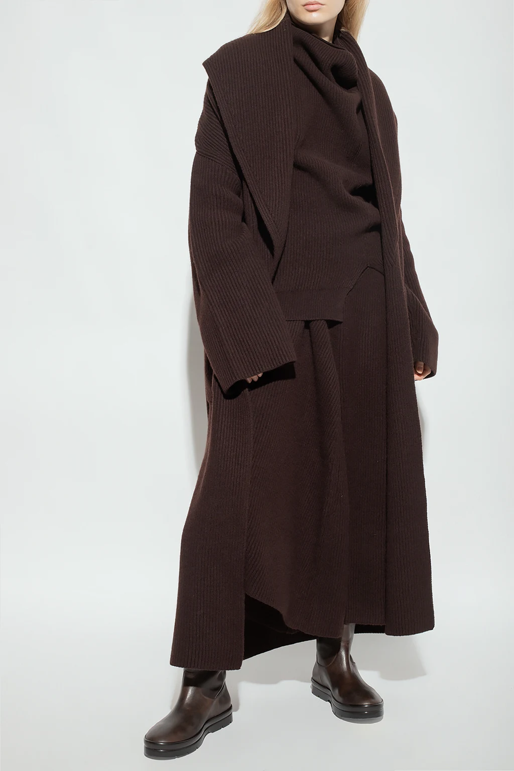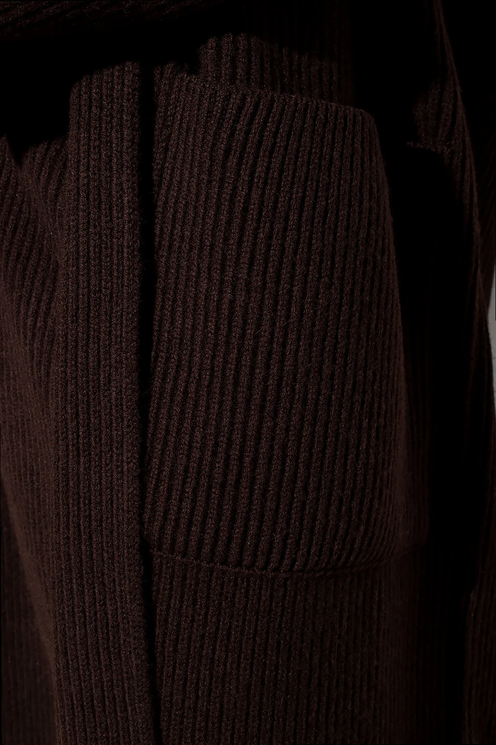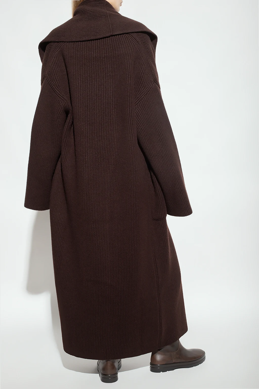 Long, brown ‘Daelan’ cardigan from The Row. Made of wool, this design features two front pockets.