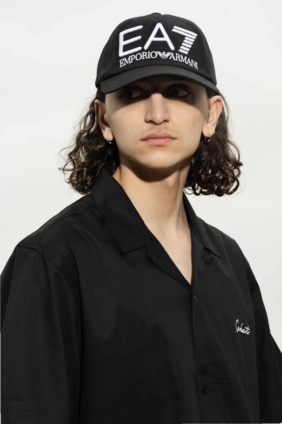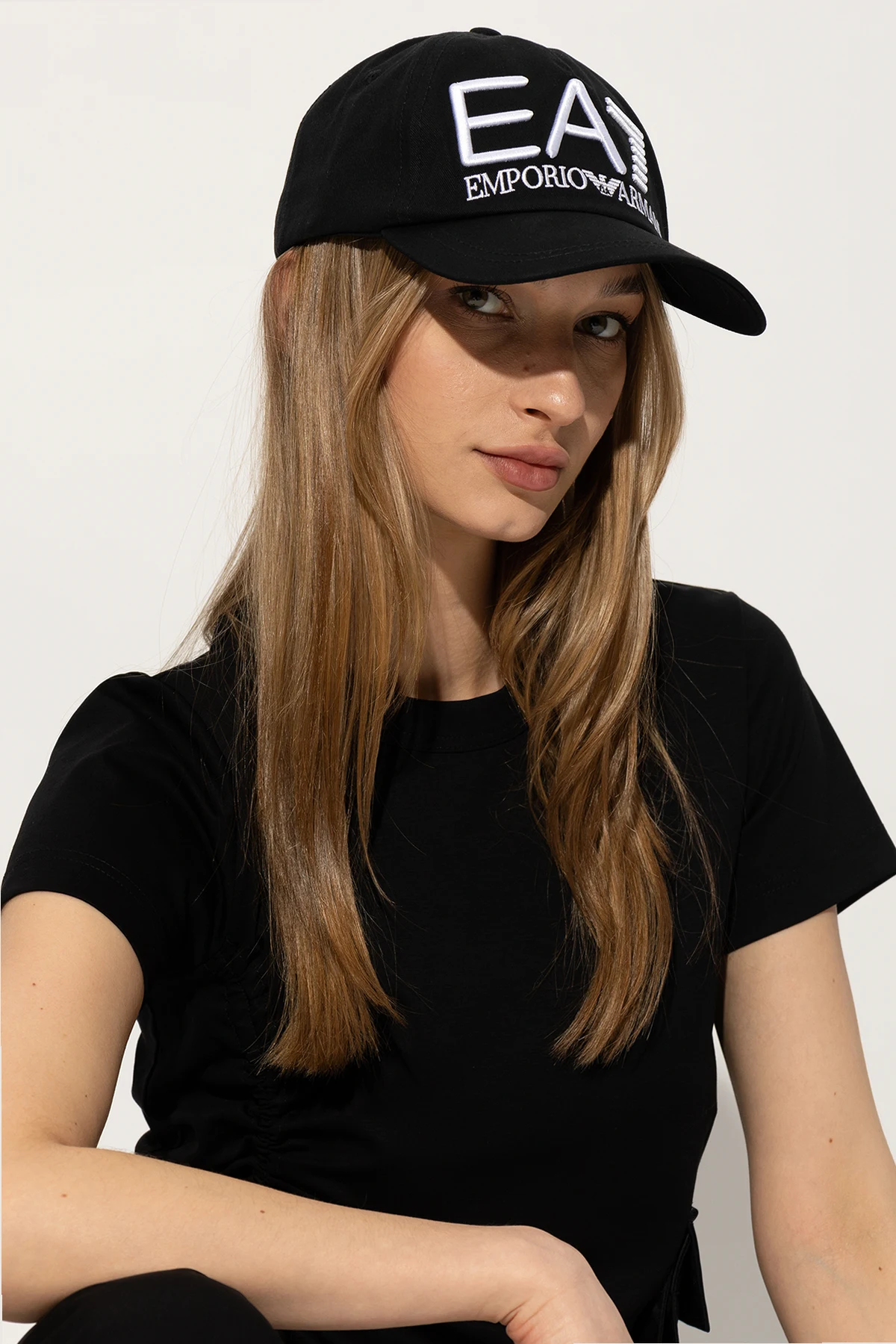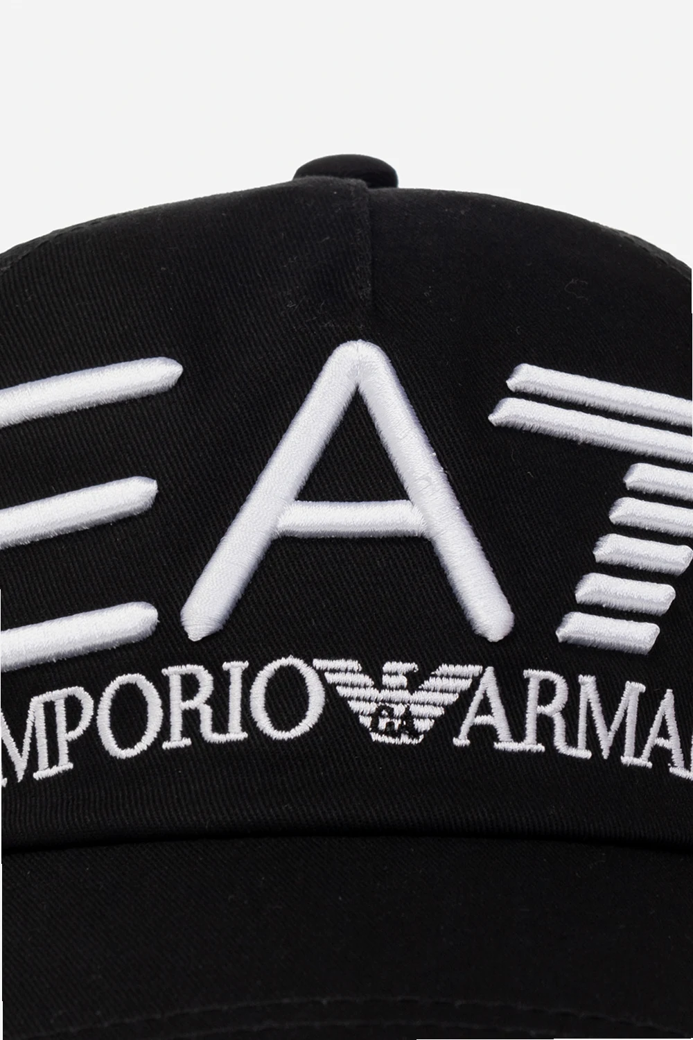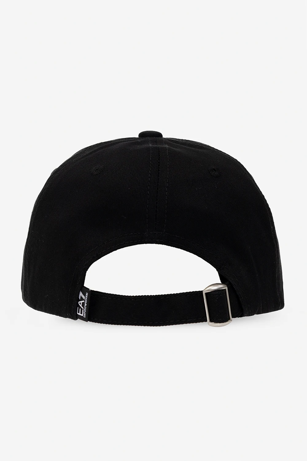Black baseball cap from EA7 Emporio Armani. Made of cotton, this item features a logo embroidery and adjustable buckle strap at the back.