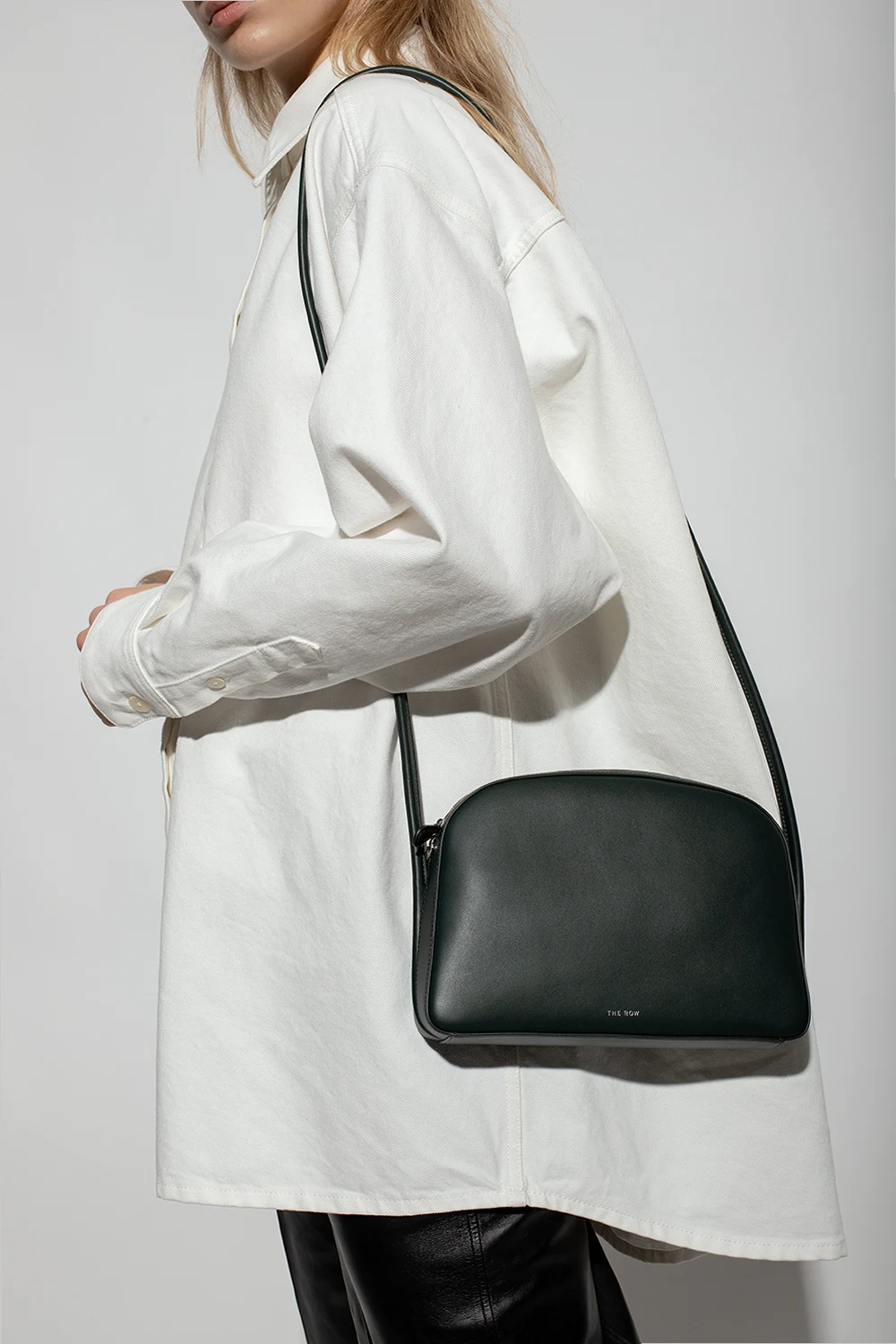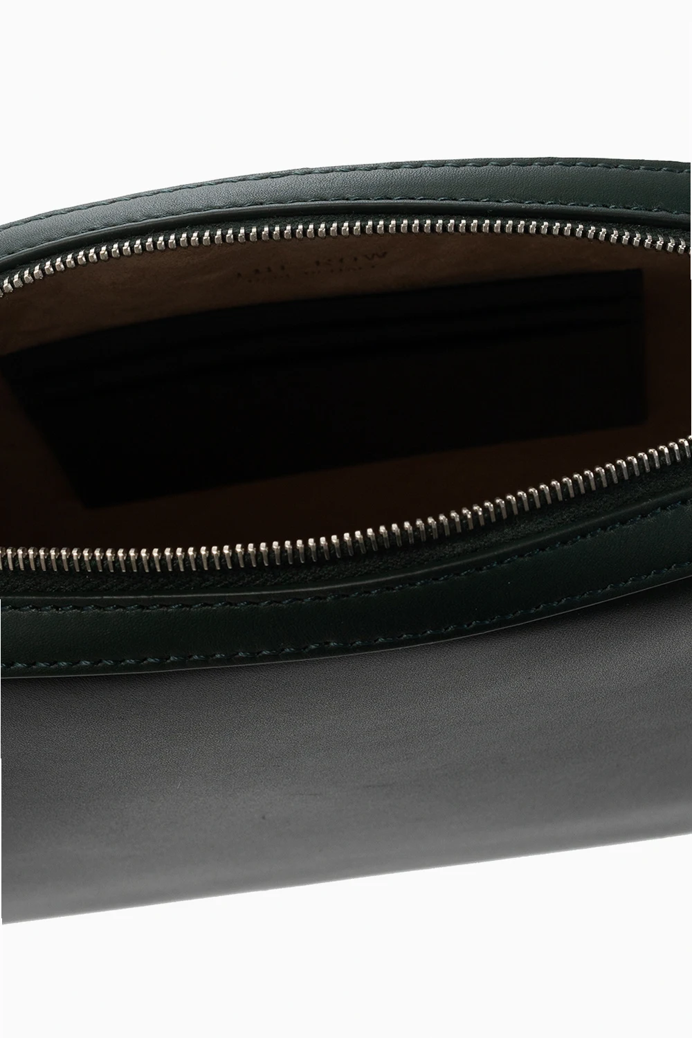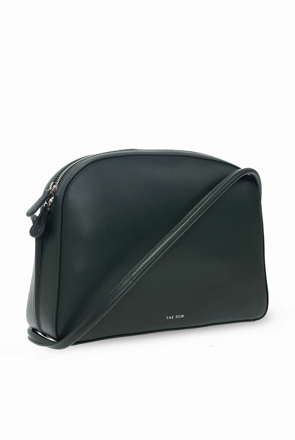 Green ‘Single Mignon’ shoulder bag from The Row. Made of calf leather, this model fastens with a zip and features an embossed logo in silver-tone, shoulder strap, silver-tone metal hardware and one internal compartment with beige suede lining and three card slots.