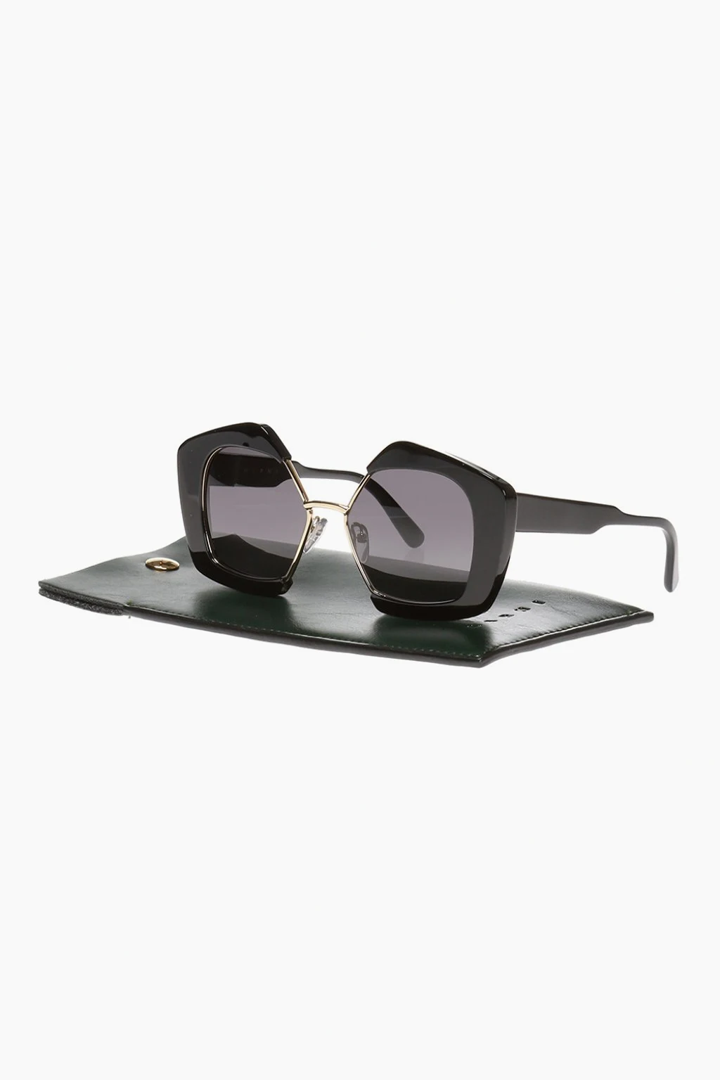 Sunglasses in black and gold-tone frame from Marni. Certified lenses with 100% UVA and UVB protection.