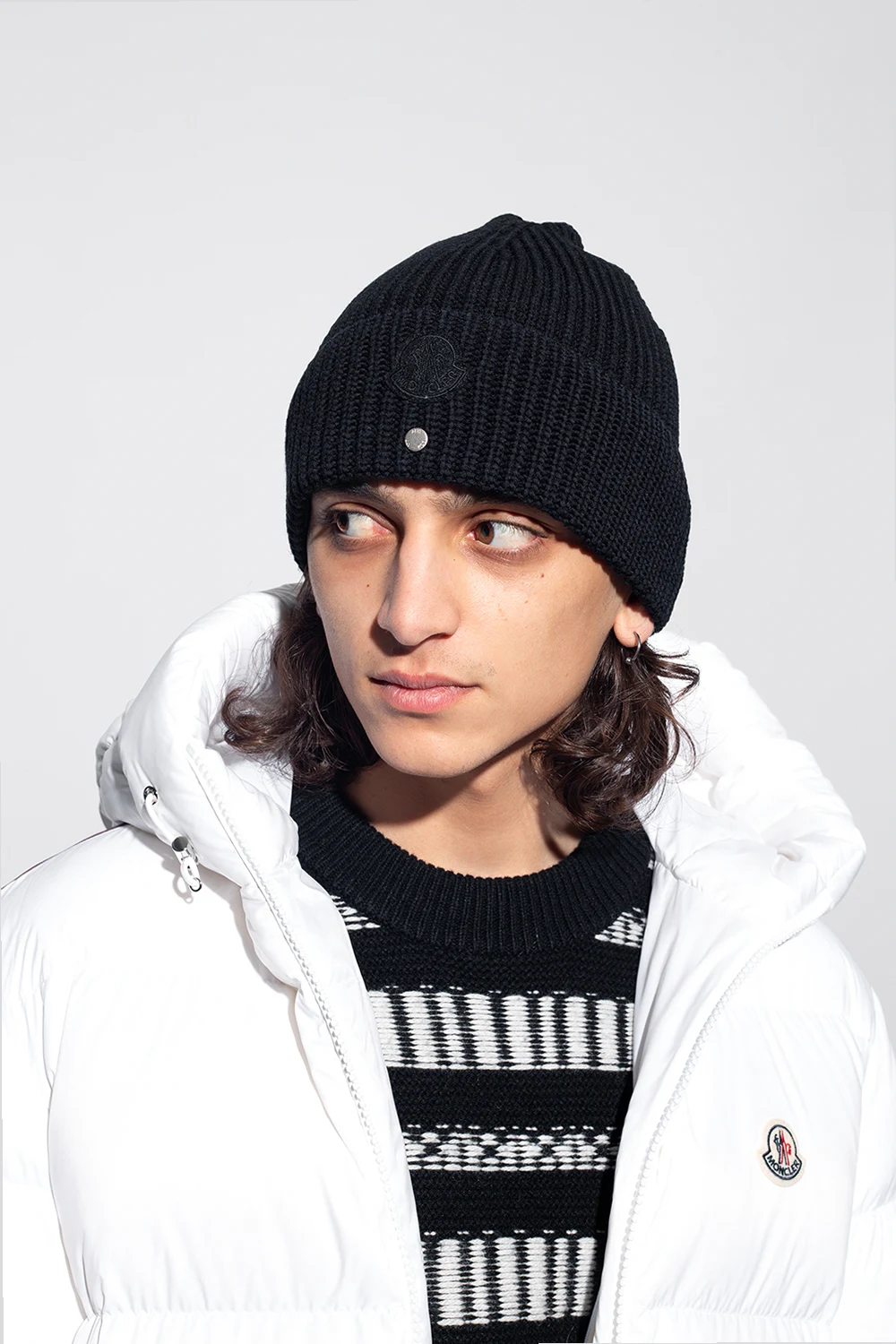 Black knit beanie with logo appliqués from Moncler Genius x 1017 ALYX 9SM, the ‘no. 6’ collection.