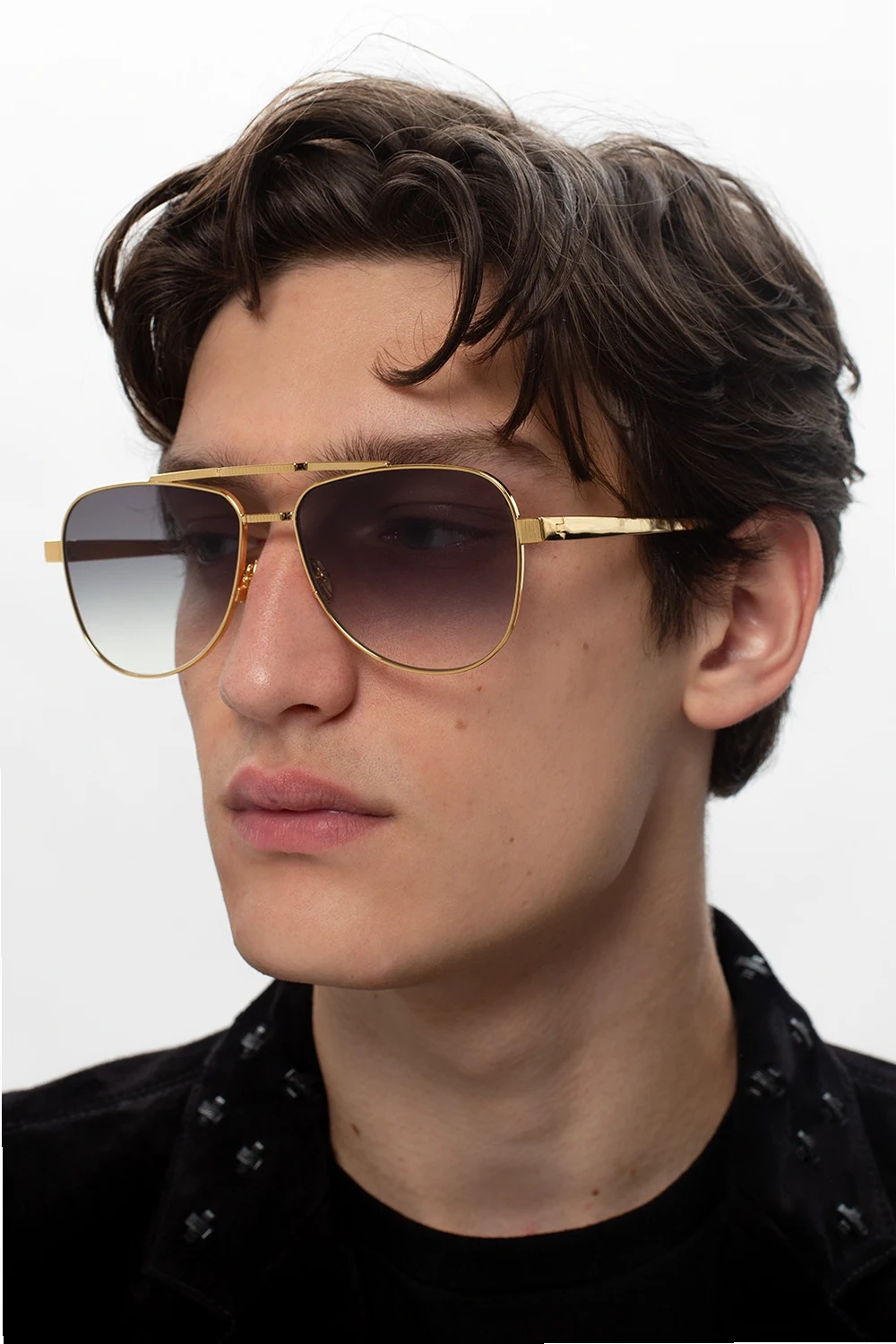 Gold-tone ‘Jim’ sunglasses from John Dalia. Crafted from metal and acetate, this 80's inspired pair has been plated with 22 carat gold. It also features the designer's logo and model name printed on the inside of the temples, a double bridge and certificated black lenses with UVA/UVB protection. Protective case included.