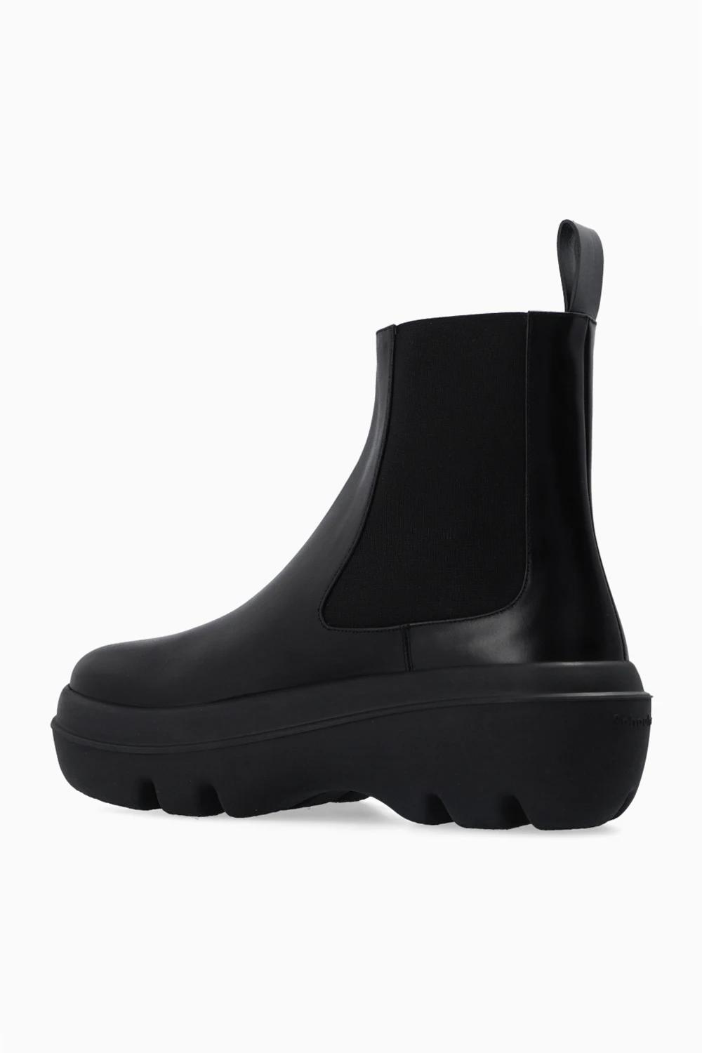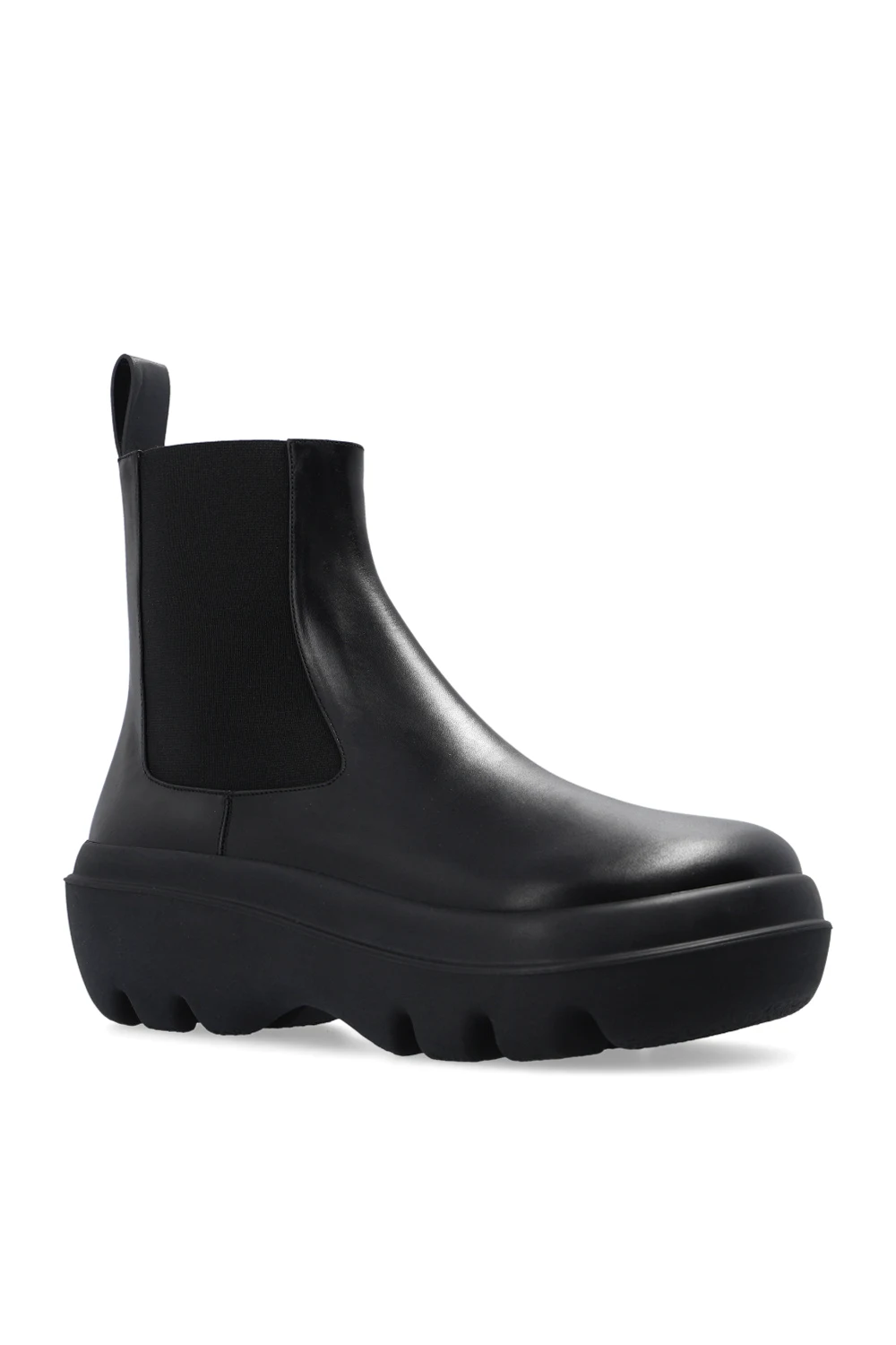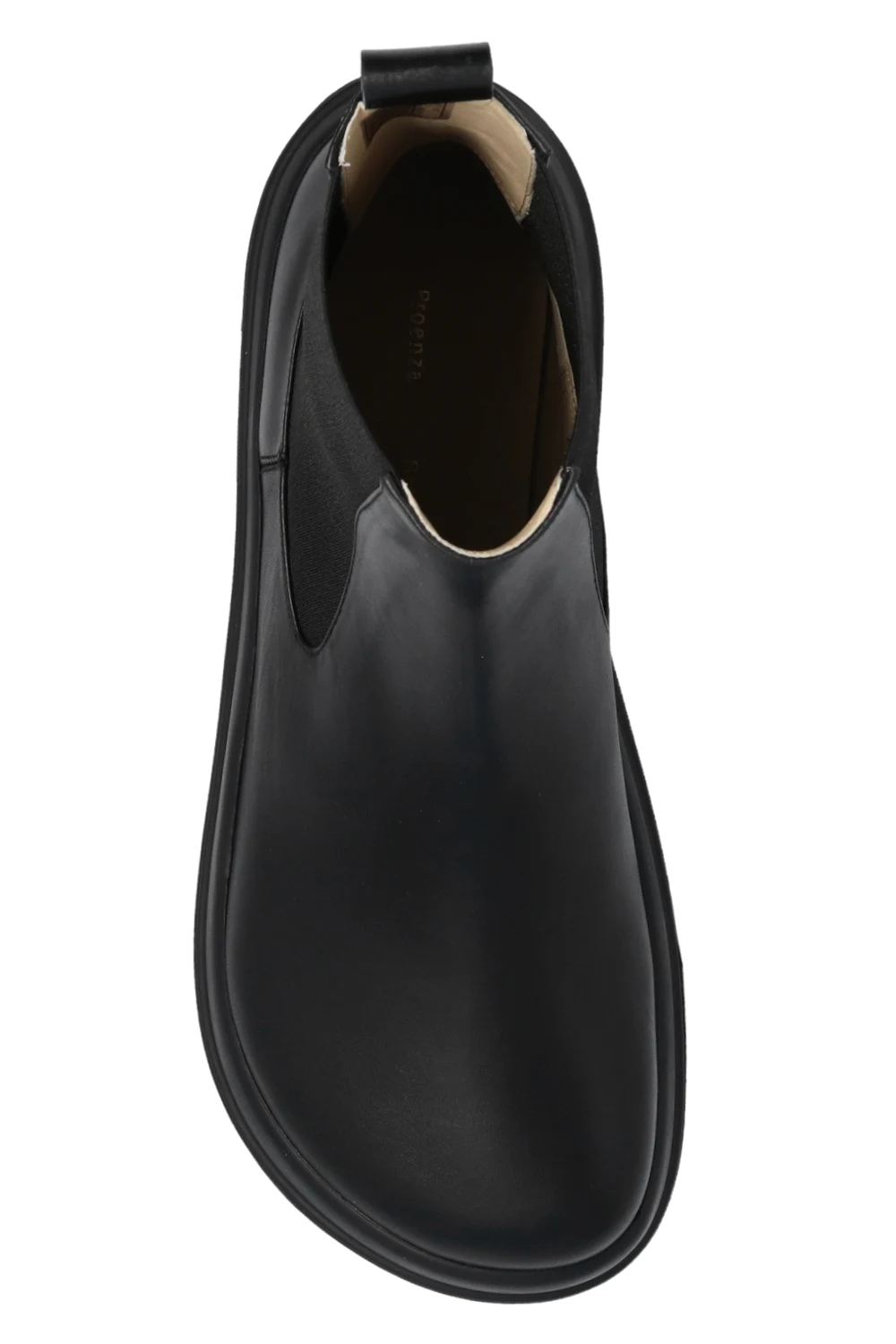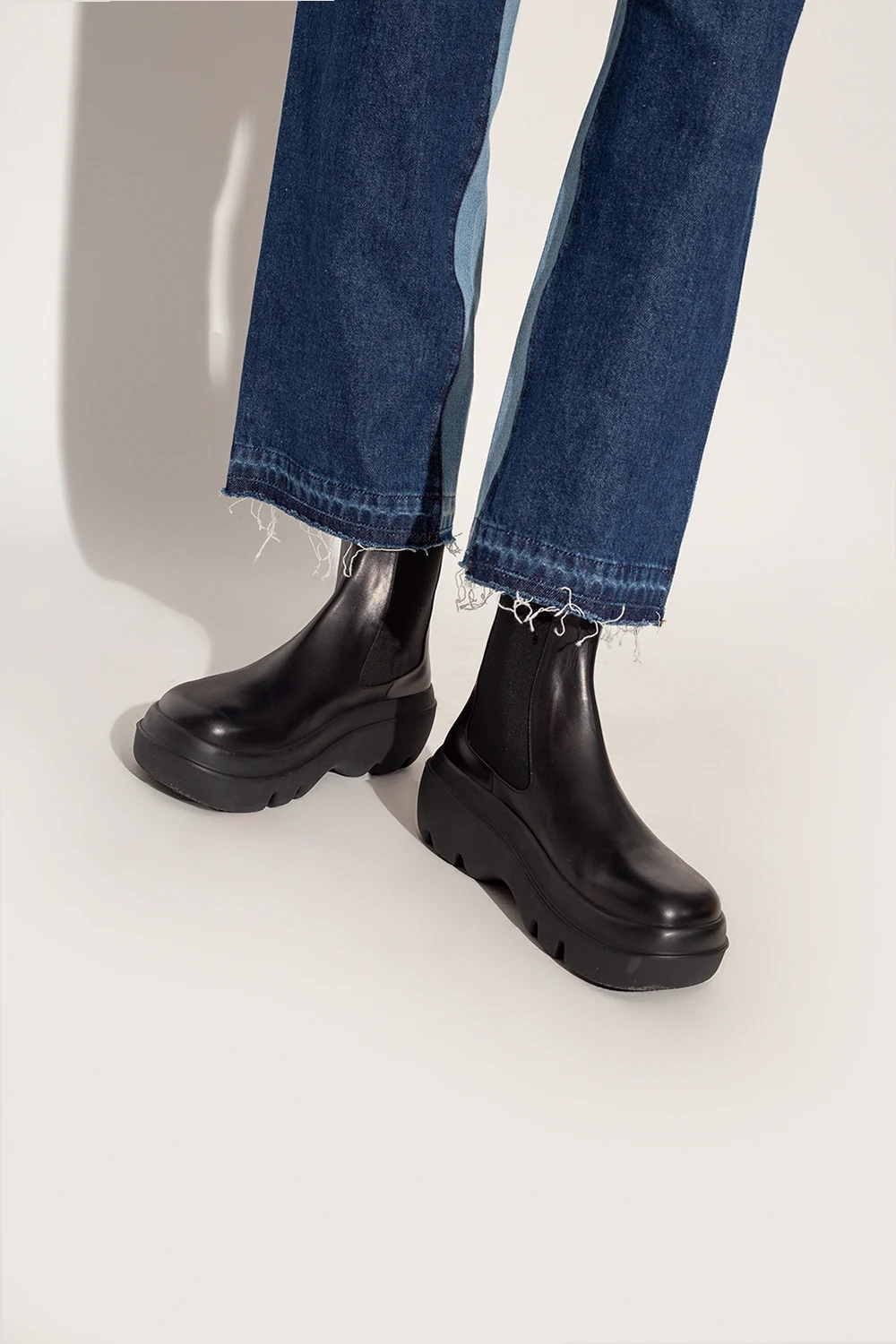 Black high-top Chelsea boots from Proenza Schouler. Made of leather, this pointed toe design features a decorative toe, elastic side panels and a black rubber sole.