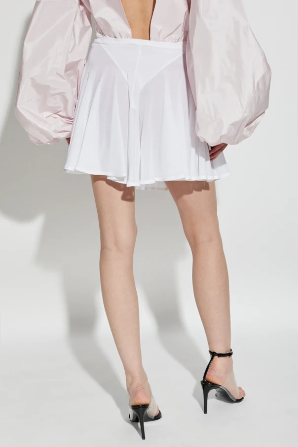 Wir präsentieren einen ausgestellten Rock aus der exklusiven Alaïa-Kollektion, der klassische Schönheit mit modernem Stil vereint. Der Rock in einem einheitlichen weißen Farbton ist die Quintessenz der Eleganz und betont subtil die Silhouette durch einen raffinierten Schnitt, der die Taille hervorhebt.