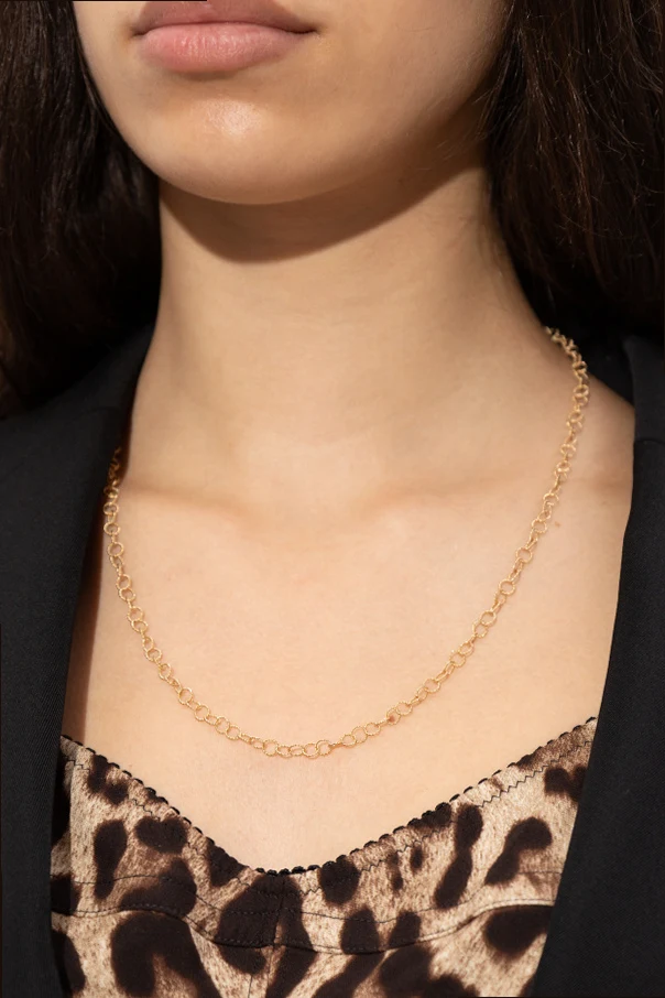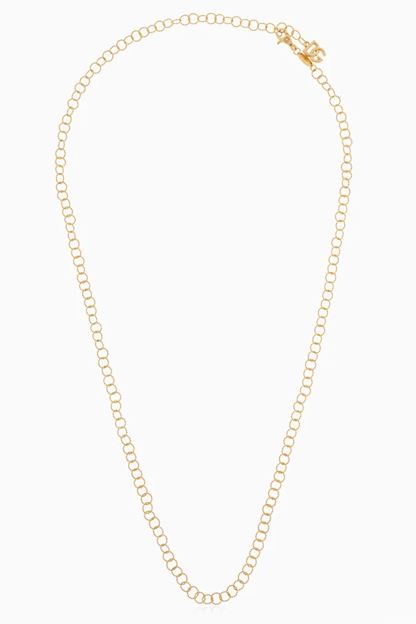 Die Halskette aus 18-karätigem Gold von Dolce & Gabbana ist ein raffiniertes Schmuckstück, das durch zeitlose Schlichtheit und dezenten Glanz besticht. Ihre minimalistische, klassische Kette aus runden, leicht abgeflachten Gliedern unterstreicht eine außergewöhnliche Unisex-Ästhetik und vereint Vielseitigkeit mit zeitloser Eleganz.
