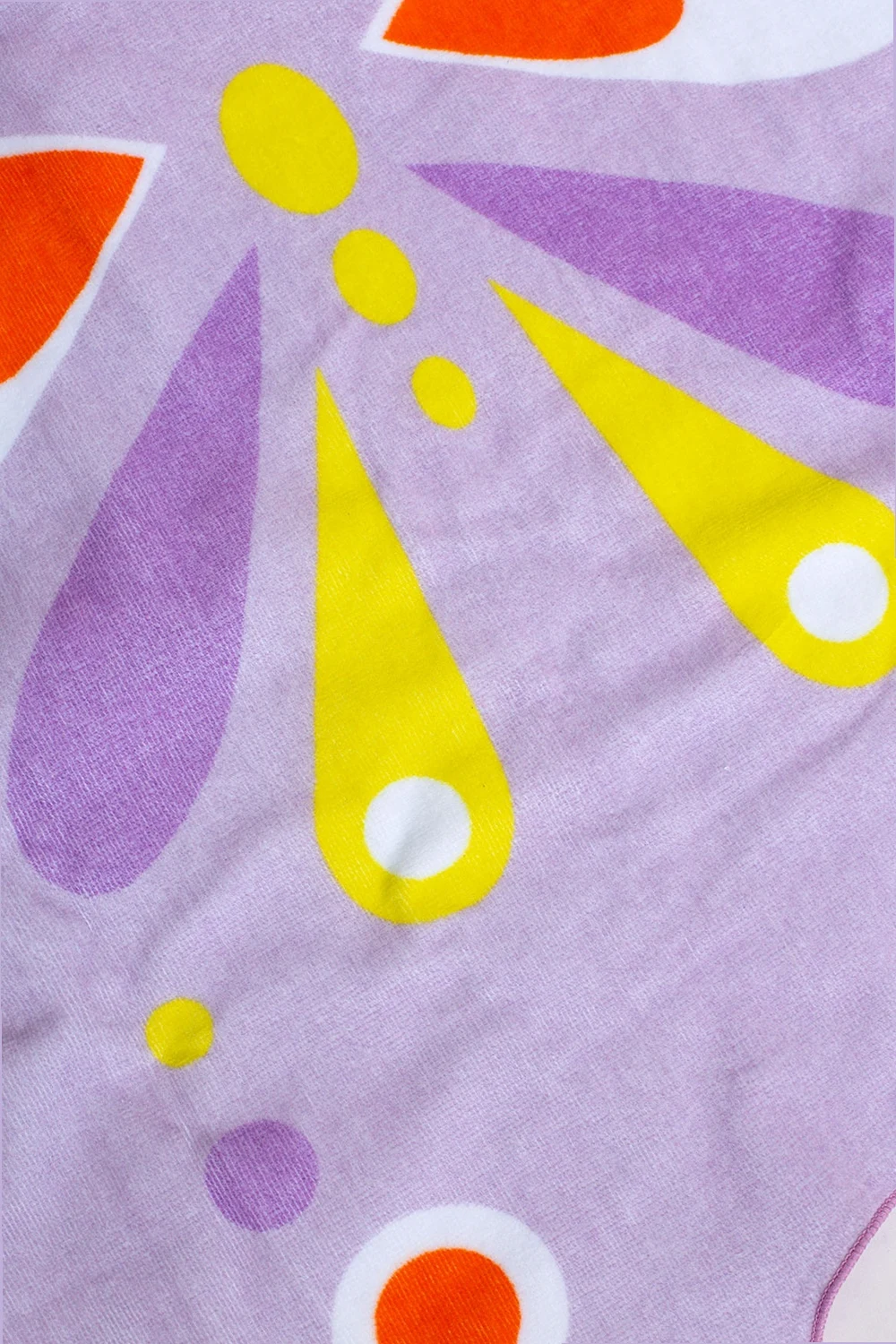 Purple hooded towel from Stella McCartney Kids. Made of cotton, this item is printed with a multicolored motif.