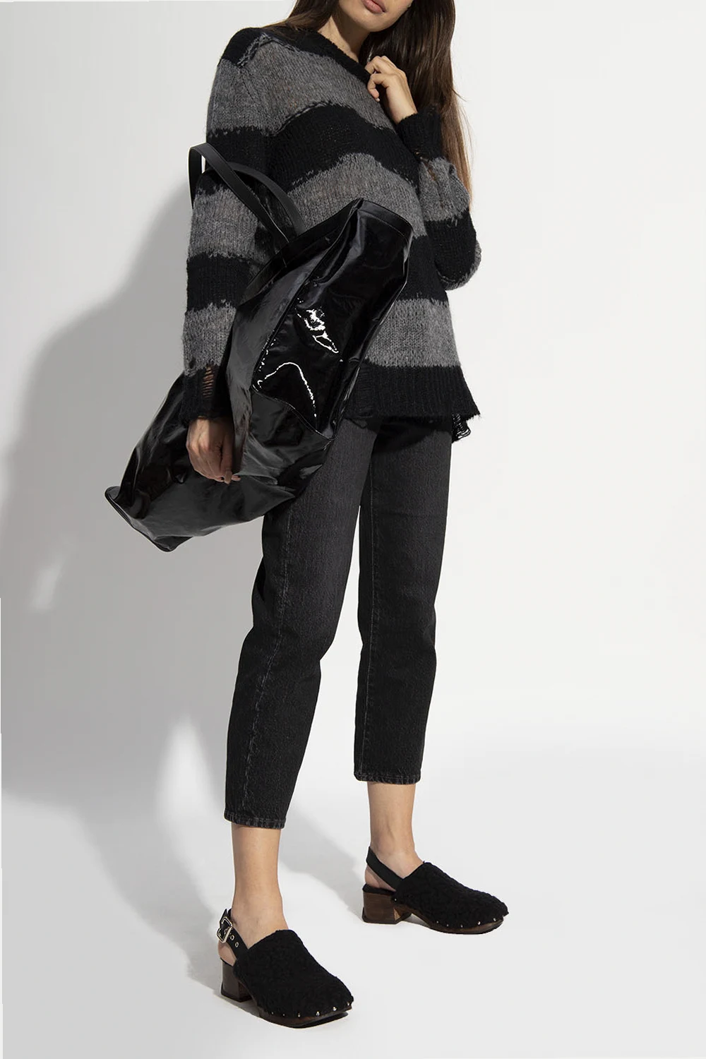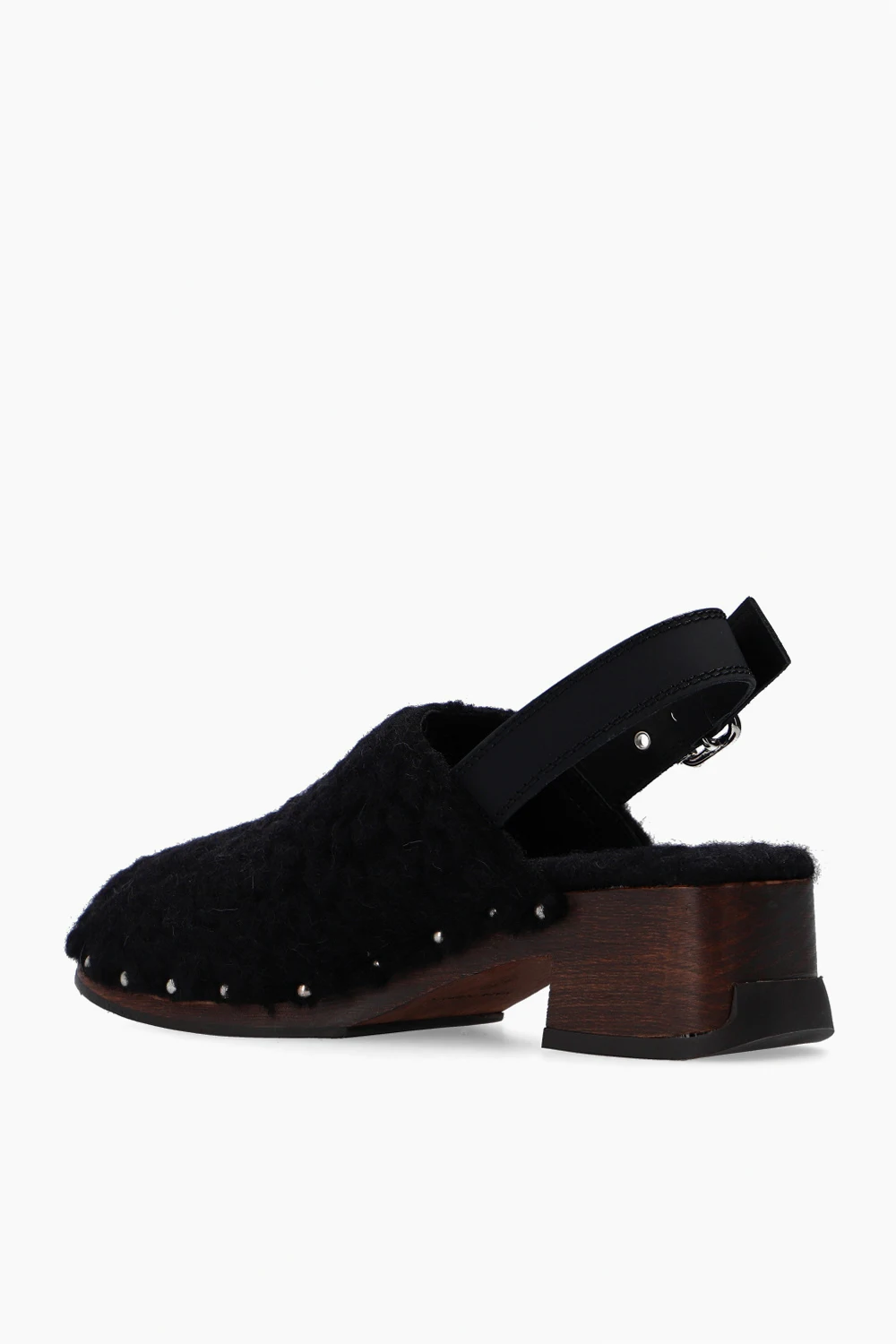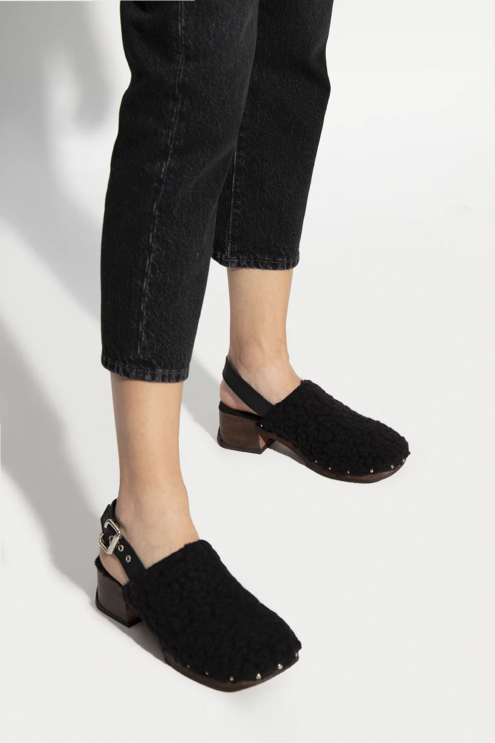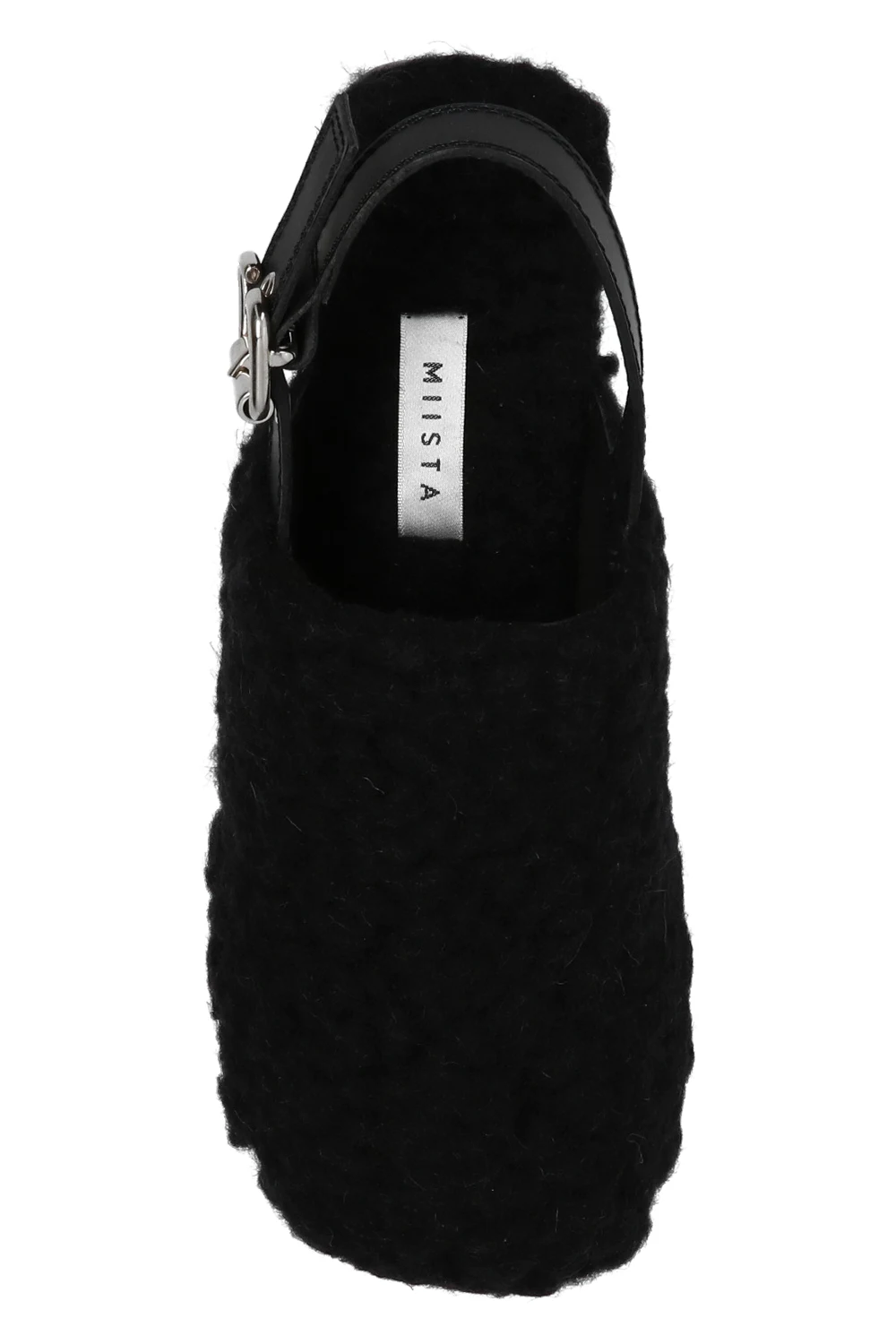 Black ‘Lana’ pumps from Miista. Set on a brown rubber sole, this pair features faux fur trims and buckled ankle straps.