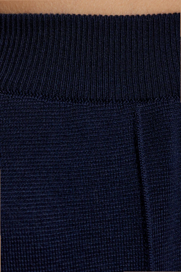 Wir präsentieren Wollhosen mit Nähten an den Hosenbeinen aus der exklusiven Kollektion der Marke Gucci. Diese marineblauen Hosen zeichnen sich durch einen geraden Schnitt aus, der perfekt mit den Nähten entlang der Hosenbeine harmoniert und die Silhouette subtil verschlankt. Hergestellt aus hochwertigster Wolle , verfügen sie über einen dezenten Glanz, der ihnen Eleganz verleiht.