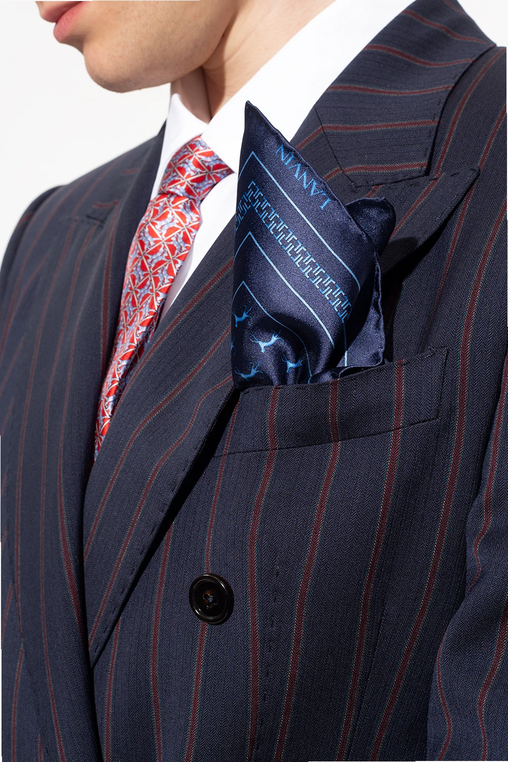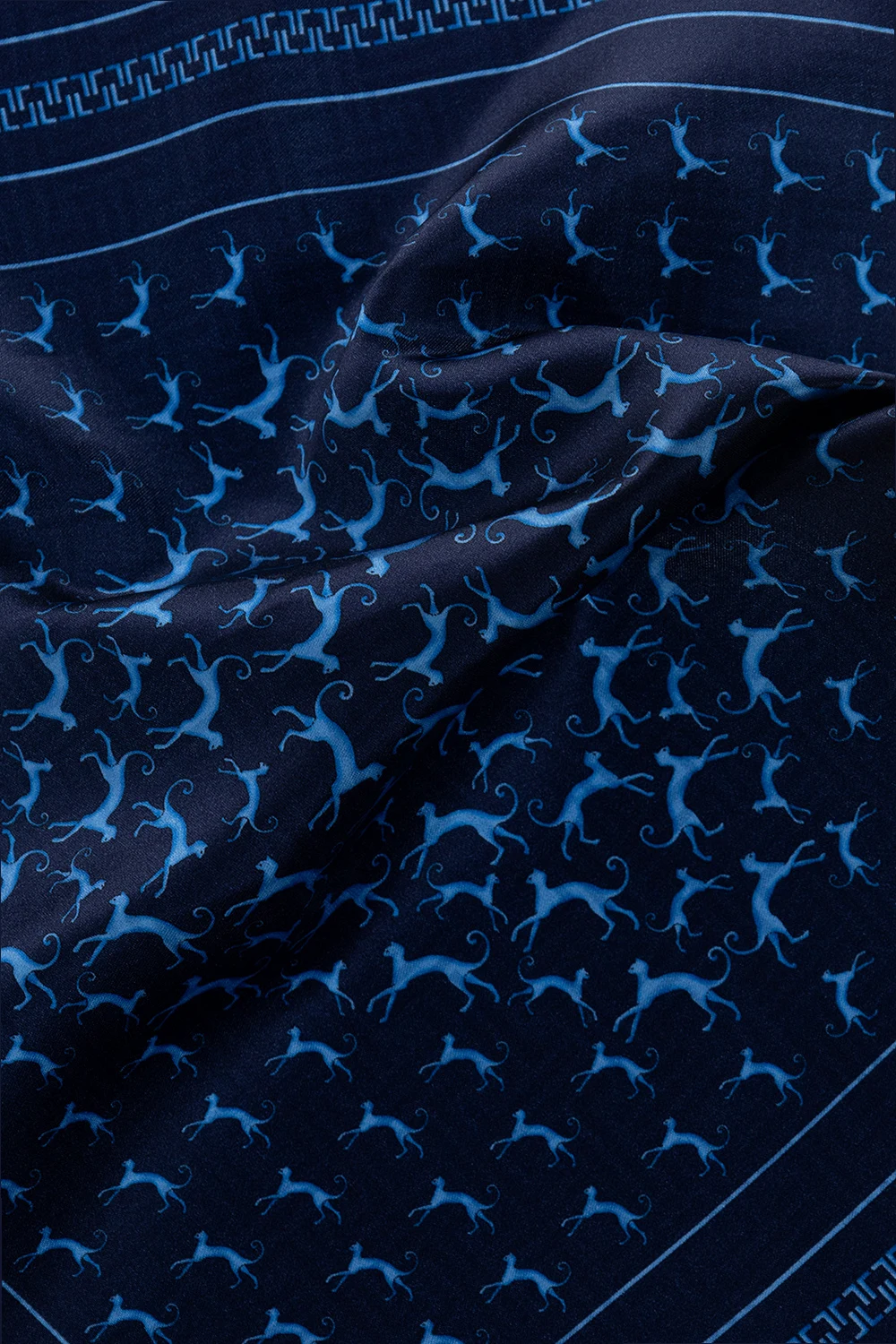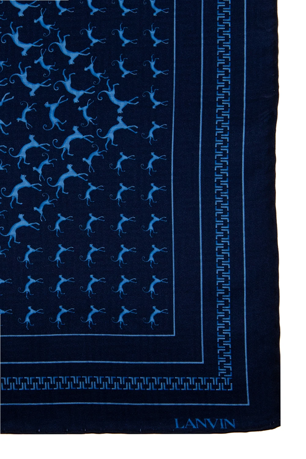 Navy blue pocket square from Lanvin. Made of silk, this item showcases the brand's logo and an animal motif in blue.