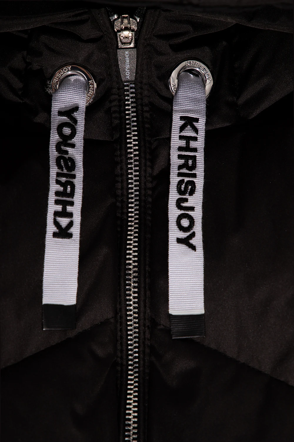 Black jacket from Khrisjoy Kids. Fastened with a zip, this garment features two slip pockets, long sleeves with zips and logo-embroidered drawstrings in blue and black at the hood and hem.