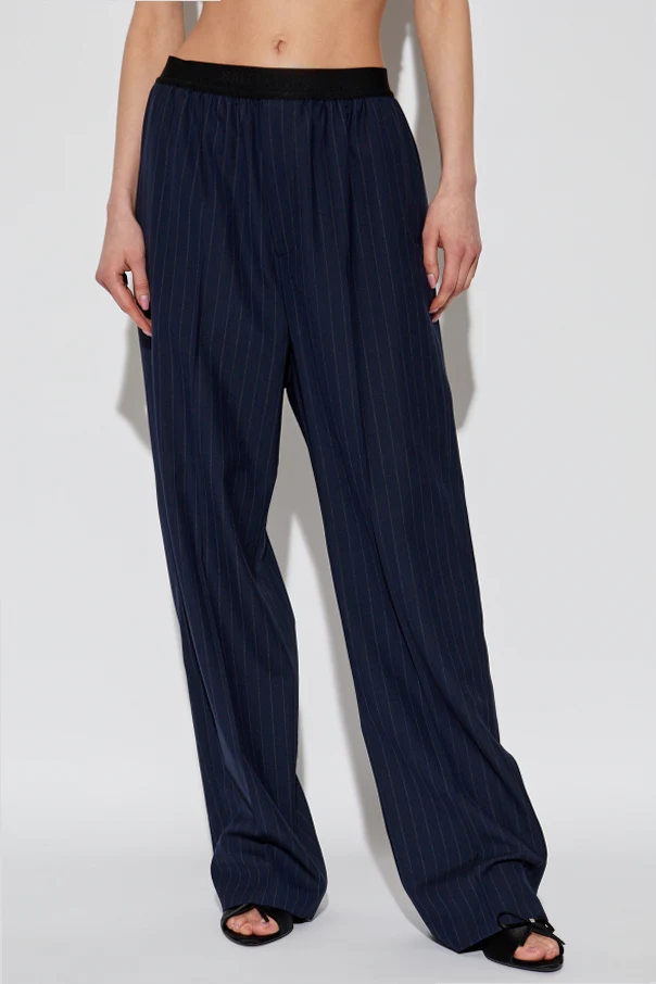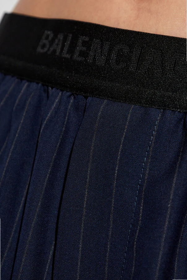 Gefertigt aus hochwertiger Wolle , bieten die Hosen Tragekomfort und ein hervorragendes Aussehen. Weite Hosenbeine und elegante Bügelfalten betonen ihren einzigartigen Schnitt, während der schwarze elastische Bund mit dem Schriftzug "BALENCIAGA" eine subtile Anspielung auf die prestigeträchtige Marke darstellt.