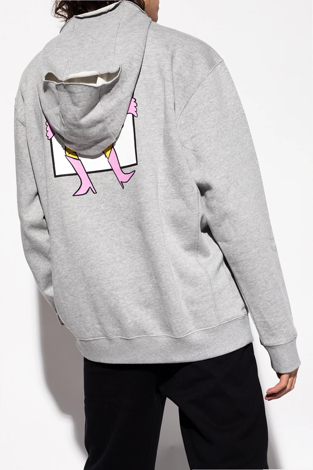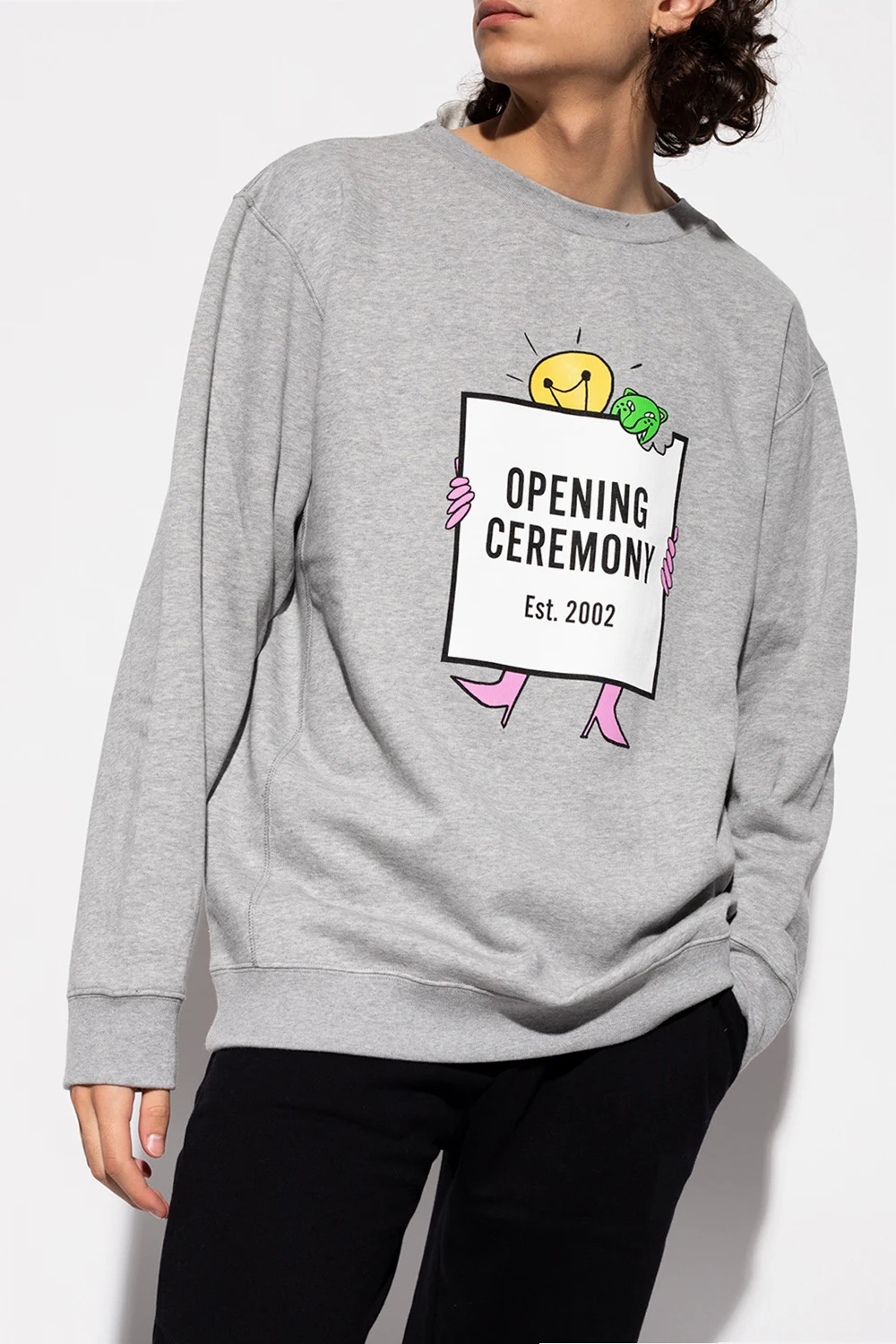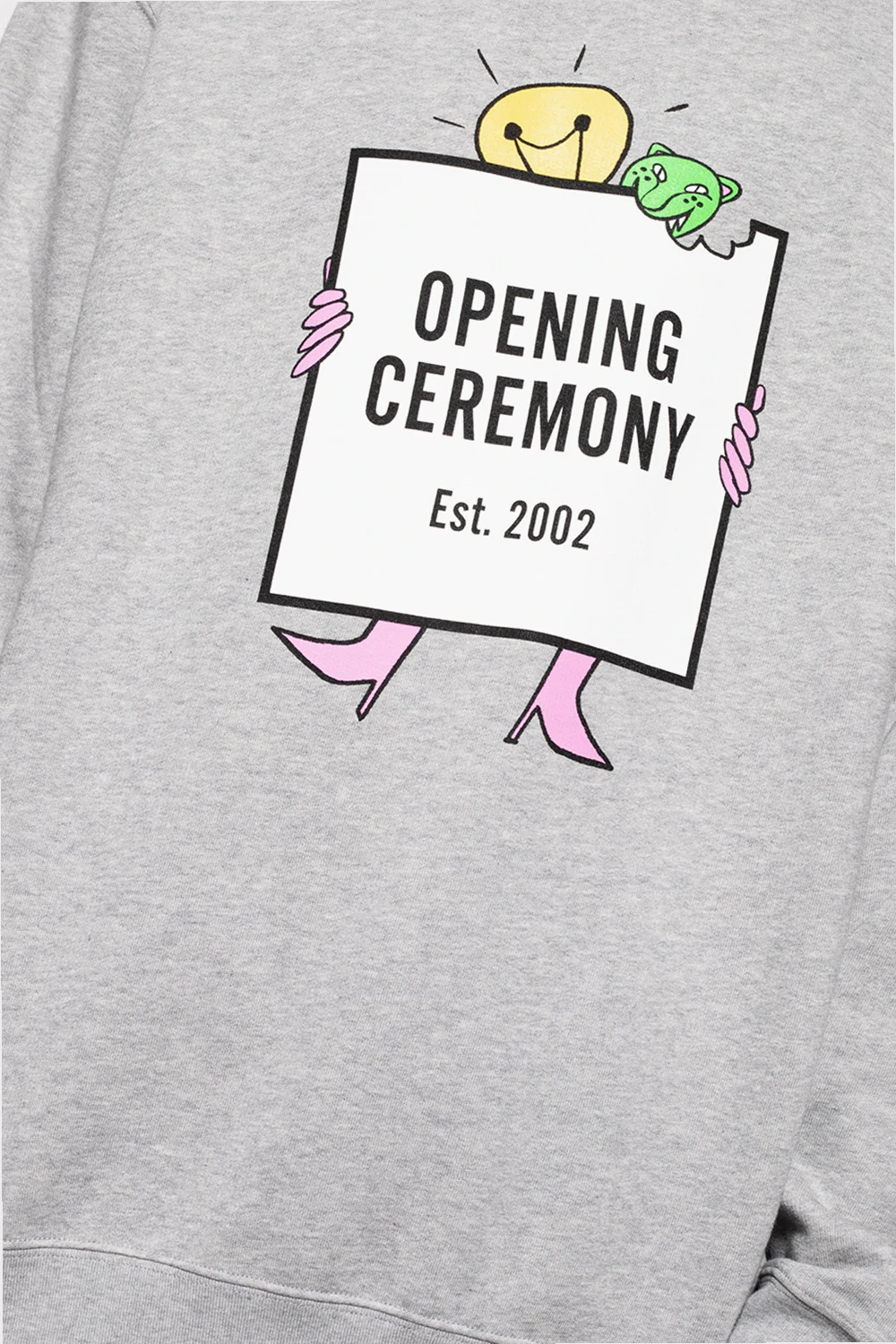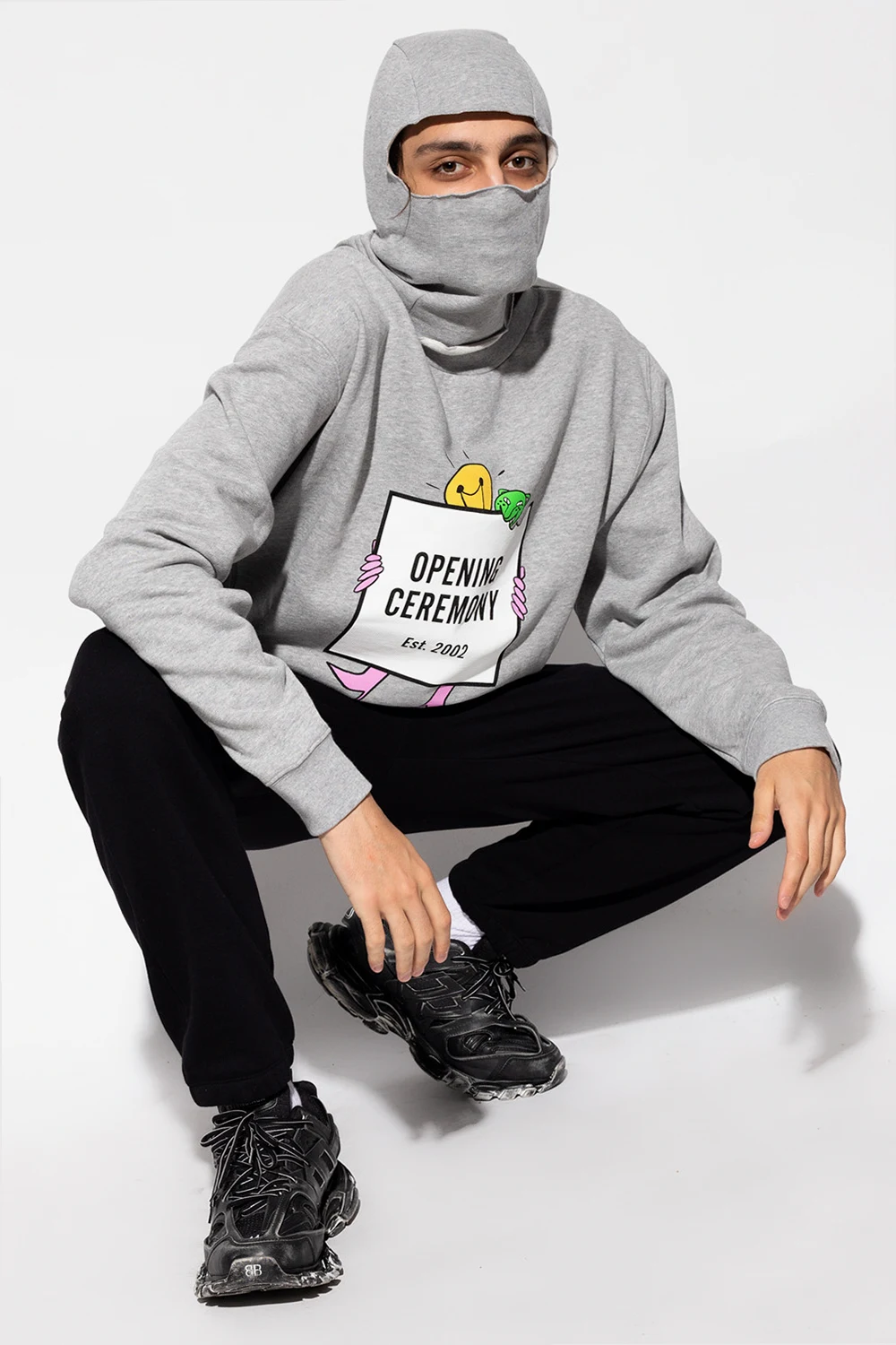 Light grey hoodie with a balaclava from Opening Ceremony. Crafted from cotton, this crewneck design features a multicolored logo print and ribbed trims.