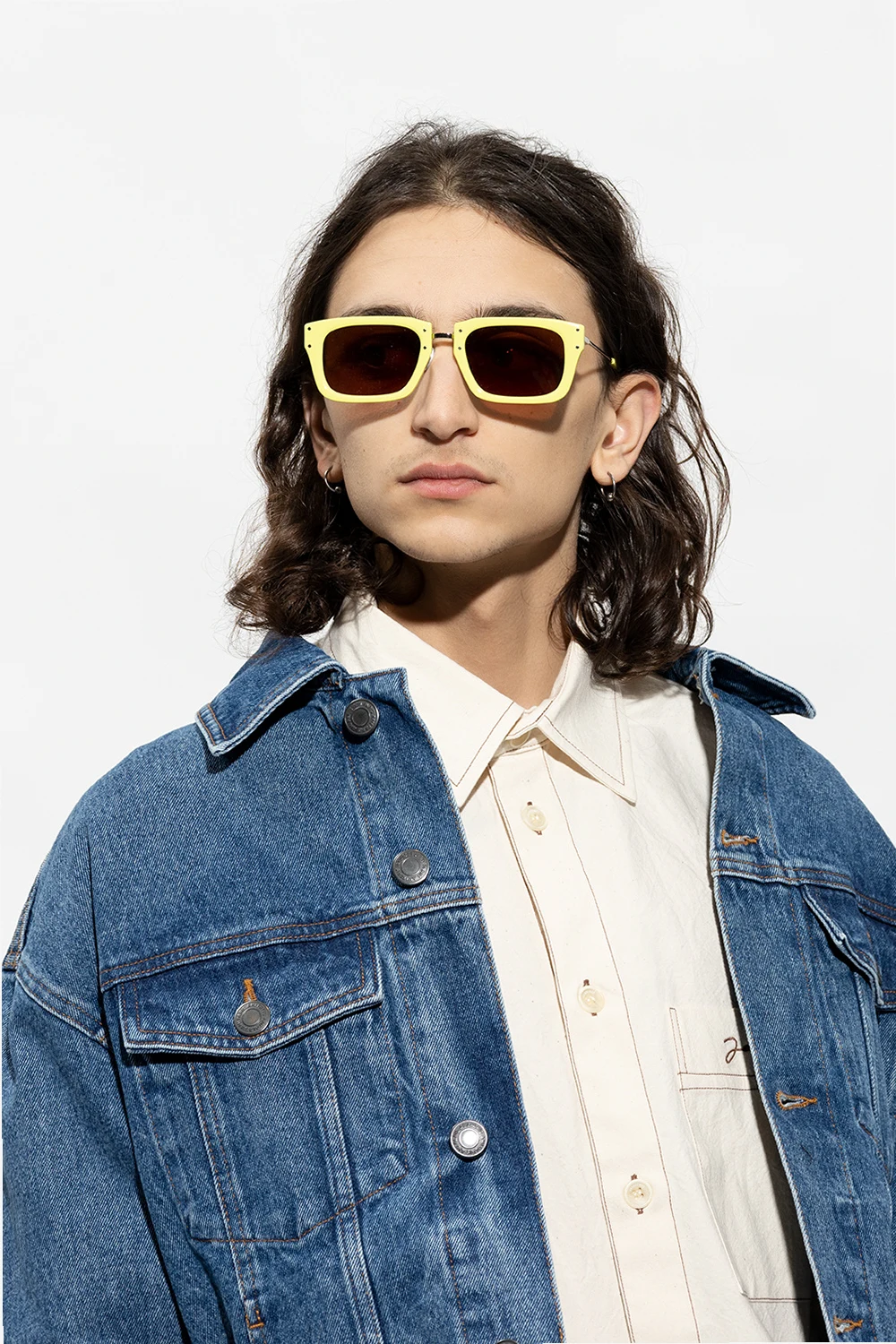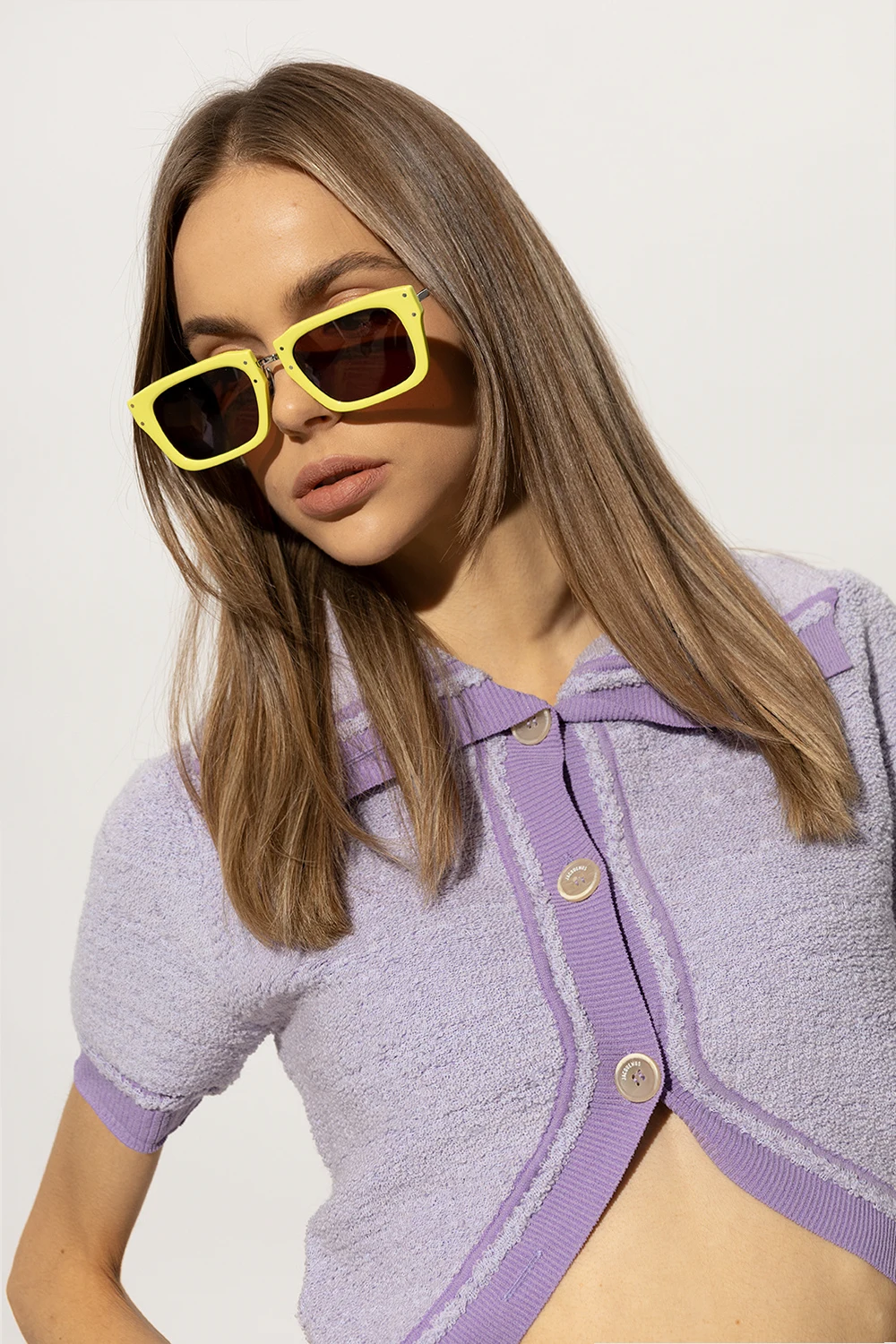 Yellow and silver-tone ‘Soli’ sunglasses from Jacquemus. Crafted from acetate and stainless steel, this D-frame model features logo detailing on the temples, and brown lenses with 100% UV protection. Case included.
