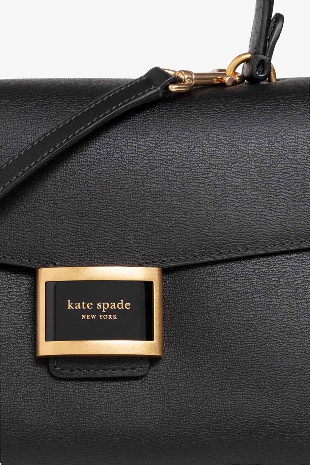 Black 'Katy Medium' shoulder bag from Kate Spade. Crafted from leather, this design secures with a magnetic snap and showcases a logo application. It is complete with a half-round handle, a back slip pocket and one internal compartment with one slip pocket and one zip pocket.