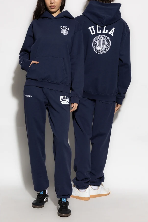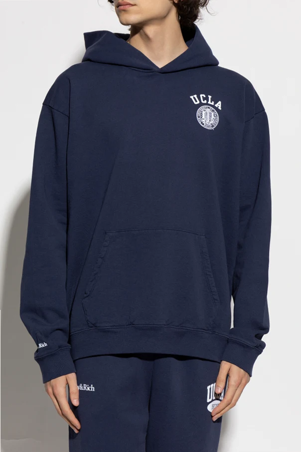Das subtile Marineblau, kombiniert mit den weißen UCLA-Logos auf der Brust und dem Rücken, schafft einen raffinierten Kontrast, der den Status dieser Kollektion unterstreicht. Die Designer der renommierten Marke Sporty & Rich haben auf das höchste Qualitätsmaterial geachtet und weiche Baumwolle verwendet, was dieses Sweatshirt nicht nur elegant, sondern auch äußerst komfortabel macht.