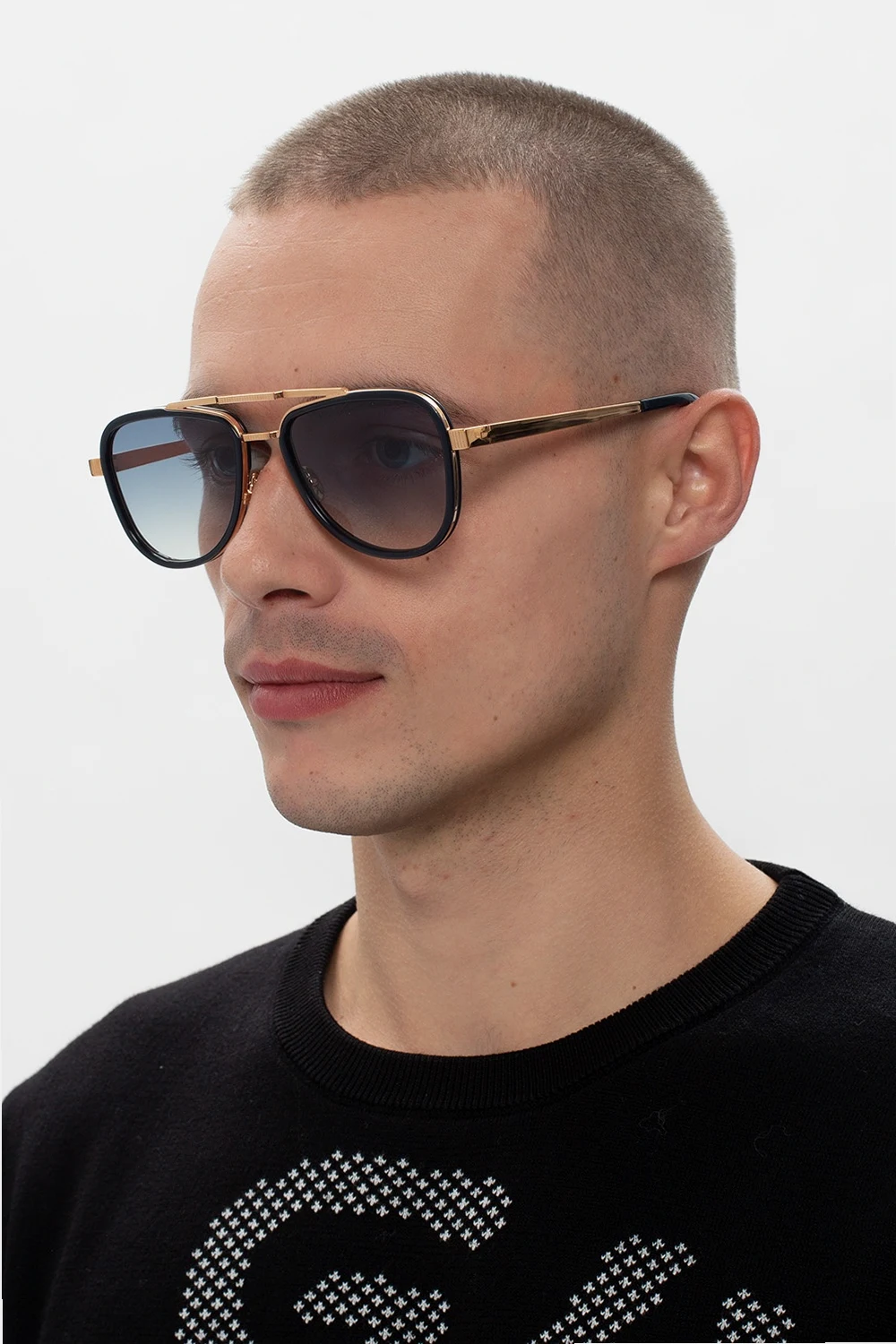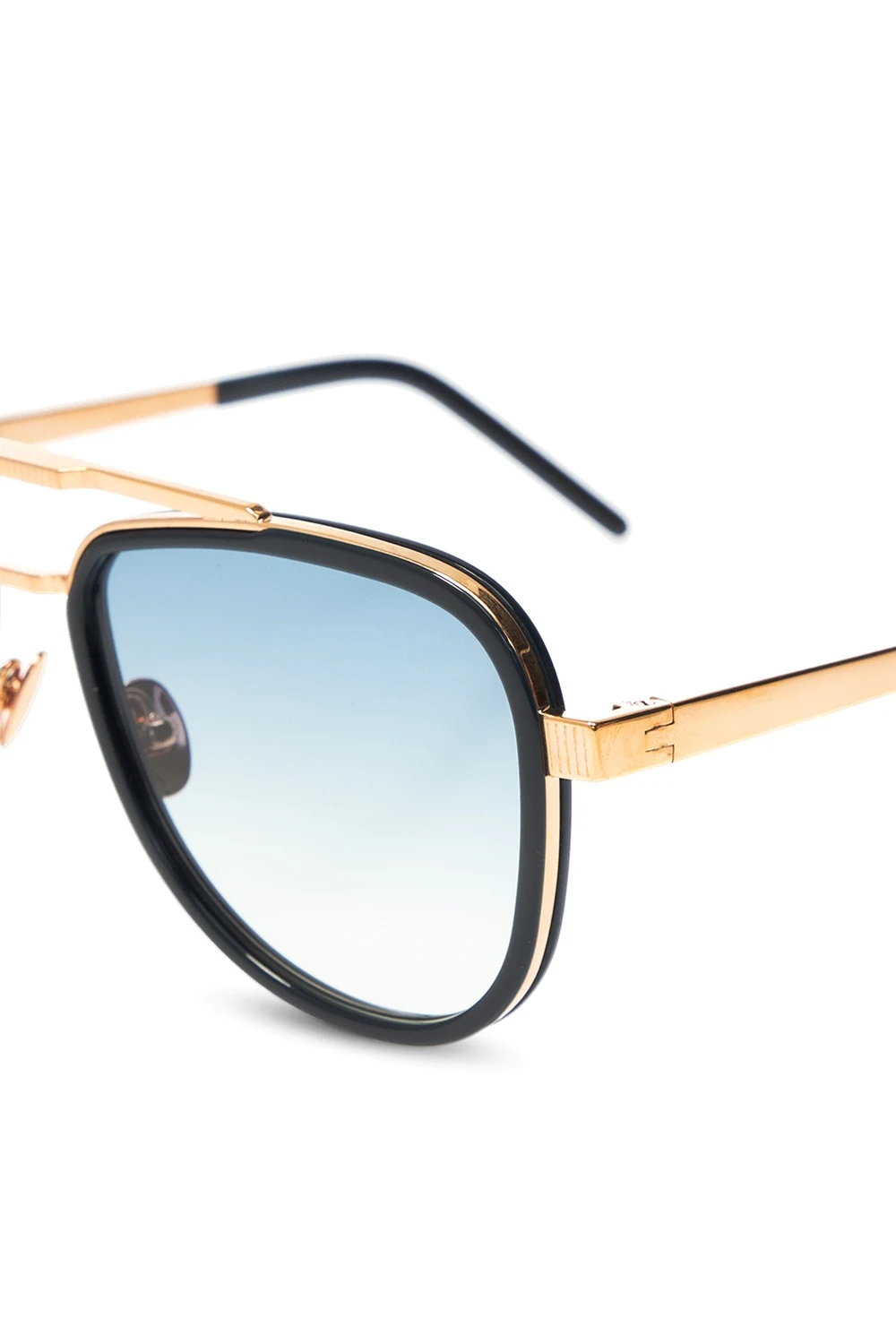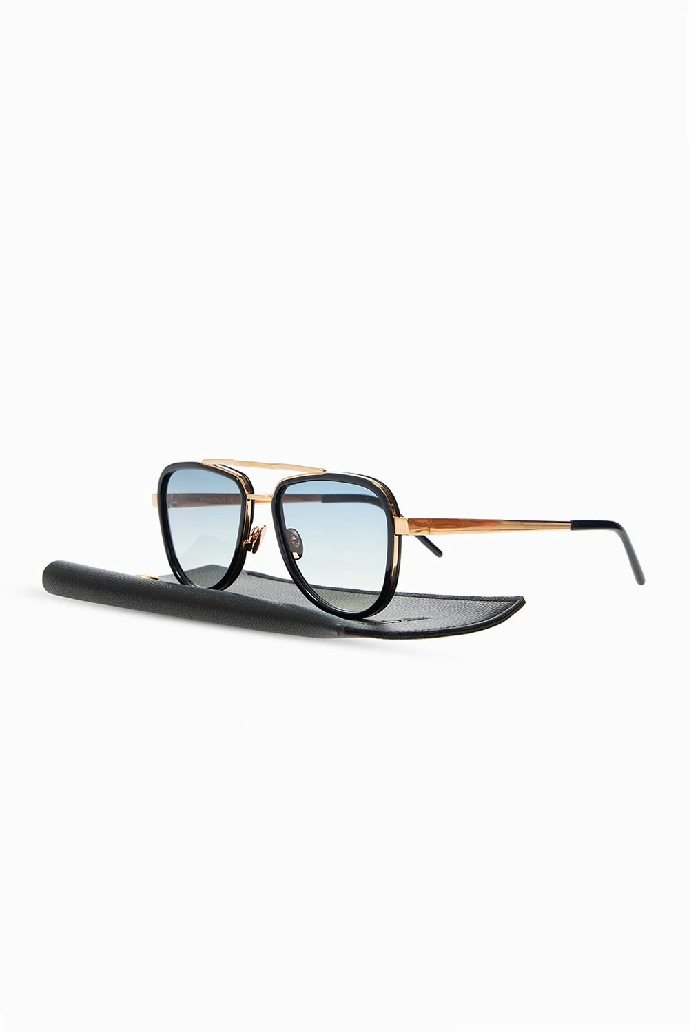 Black and gold-tone ‘Jim’ sunglasses from John Dalia. Plated with 22 carat gold, this item has black certificated UVA/UVB lenses and a protective case with a logo.