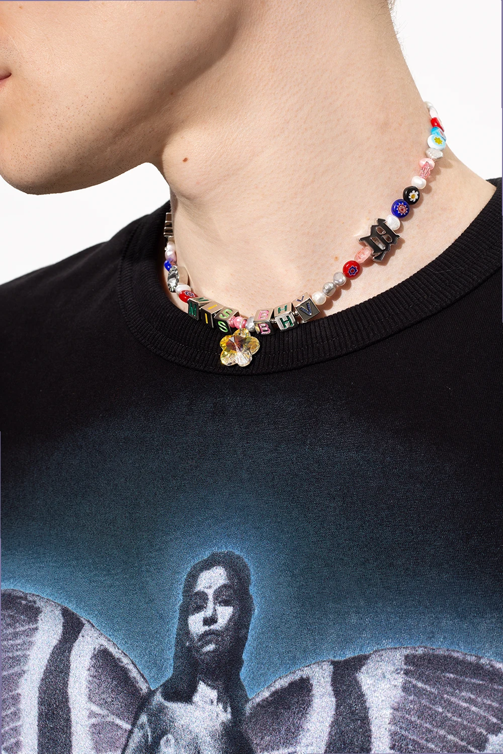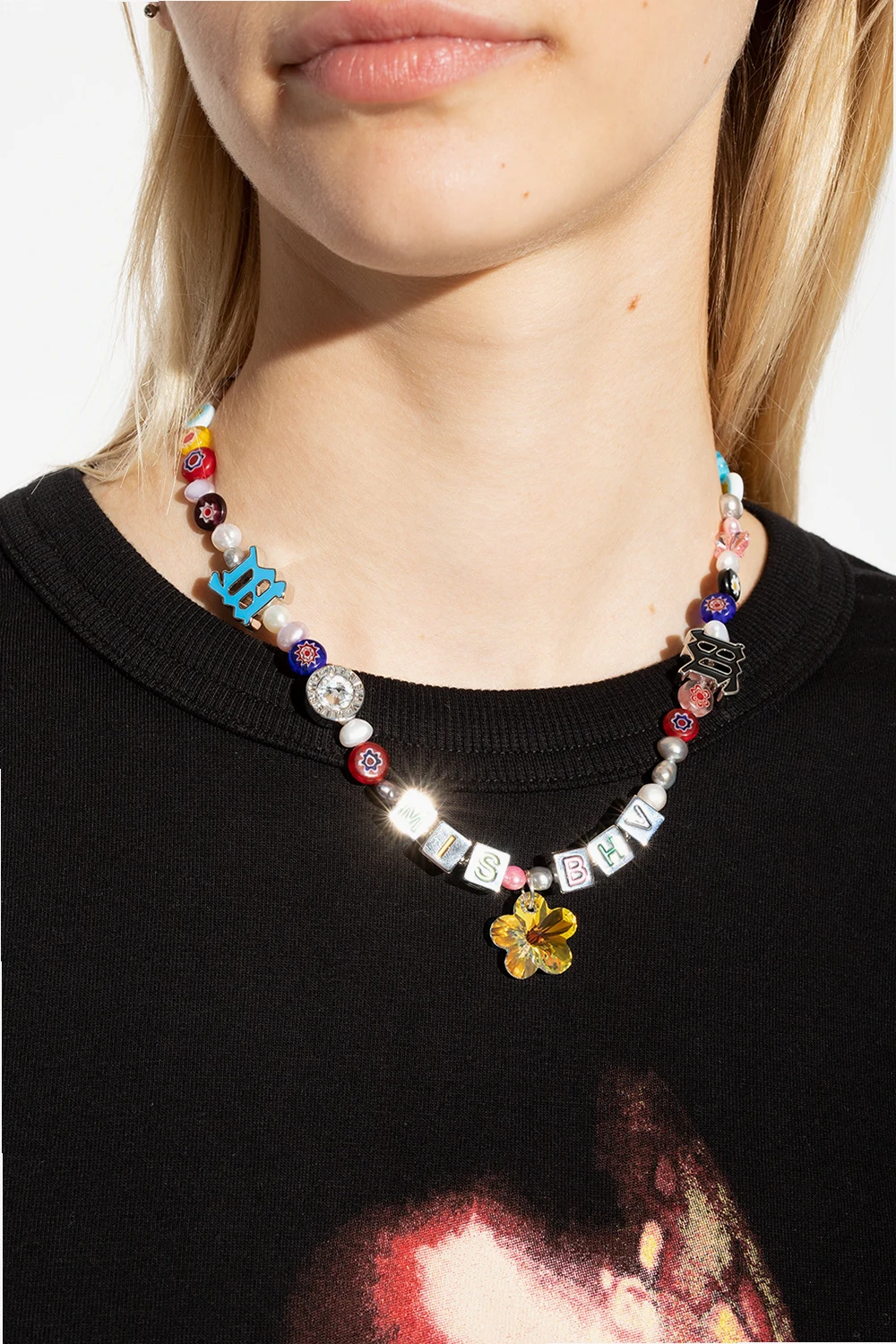 Multicoloured necklace from MISBHV. Embellished with colourful applications, pearls and logo inserts, this item showcases a glistening crystal pendant and a lobster clasp fastening.