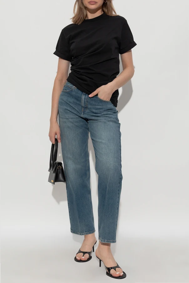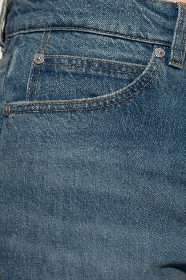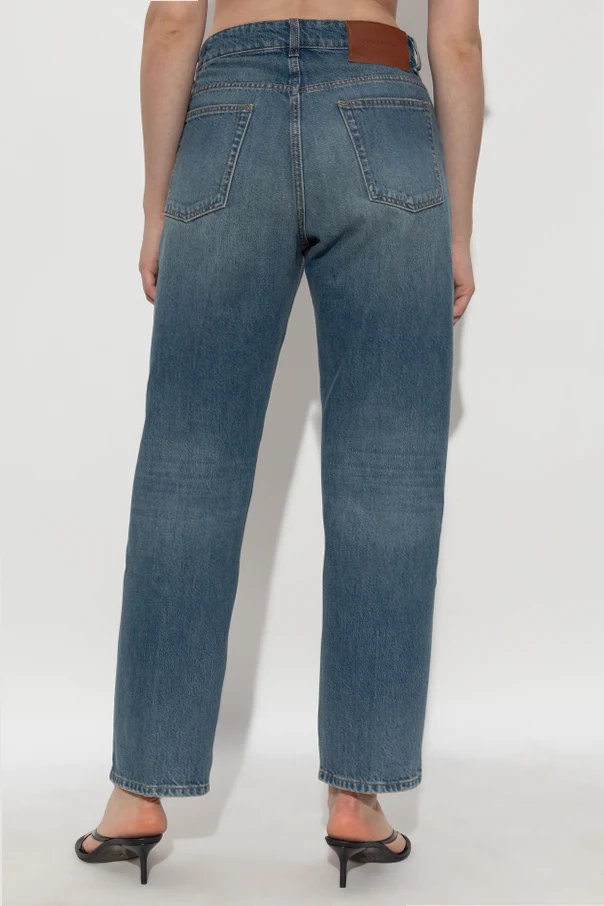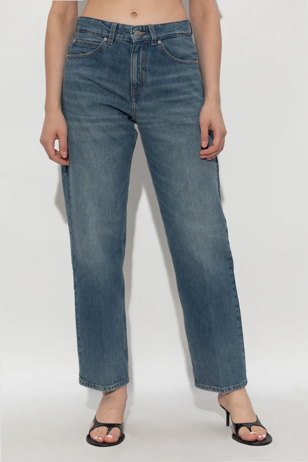 Experience refined sophistication with the Straight-Leg Jeans by Victoria Beckham—an elegant tribute to classic American denim. Expertly crafted from pure cotton, these jeans feature a structural, non-stretch fabric that provides enduring shape and durability. The high-waisted silhouette artfully accentuates the waist, while the straight, full-length legs offer a timeless and universally flattering fit. Highlighting artisanal attention to detail, this design boasts five functional pockets , including a discreet coin pocket and signature contrasting orange topstitching . Sturdy metal rivets and a front button complete the look, enhanced by a softly faded blue wash for subtle dimension. A perfect balance of geometric precision and understated allure, these jeans epitomize modern elegance tailored for the discerning woman. Why choose this product? Impeccable, structured cotton denim for elevated durability Flattering high-waisted, straight-leg cut enhances silhouette Distinctive brand detailing with geometric and classic finishes Timeless color and premium craftsmanship by Victoria Beckham