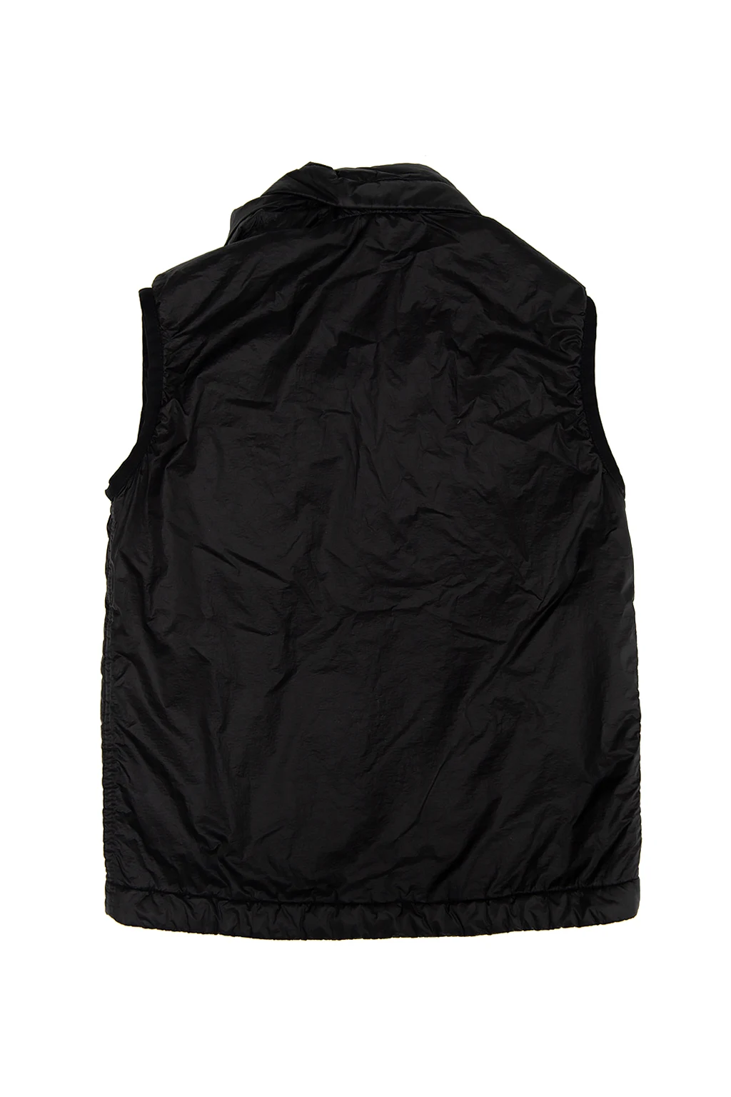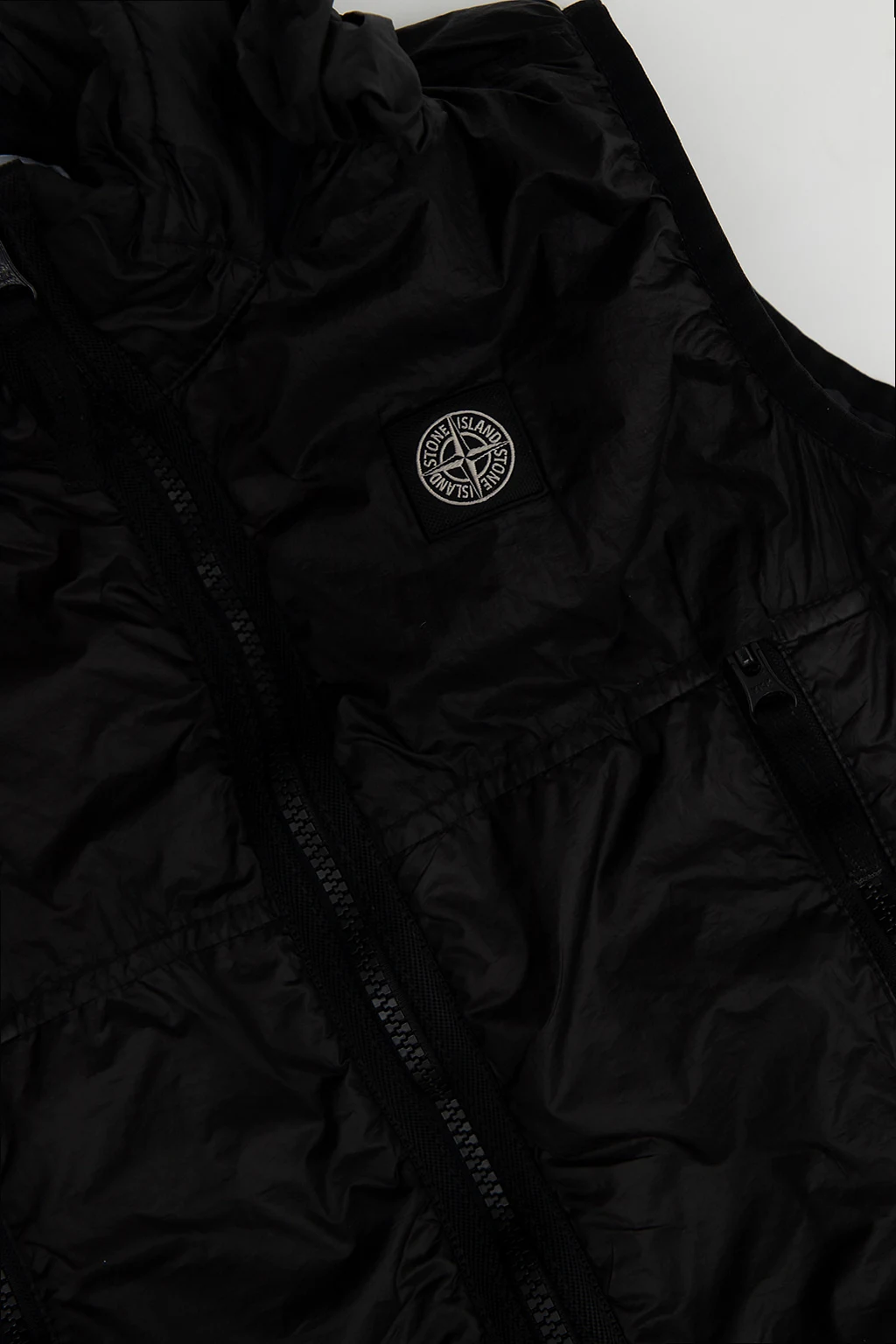Black vest from Stone Island Kids. Fastened with a zip, this design features a logo patch, two front zip pockets and a concealed hood.