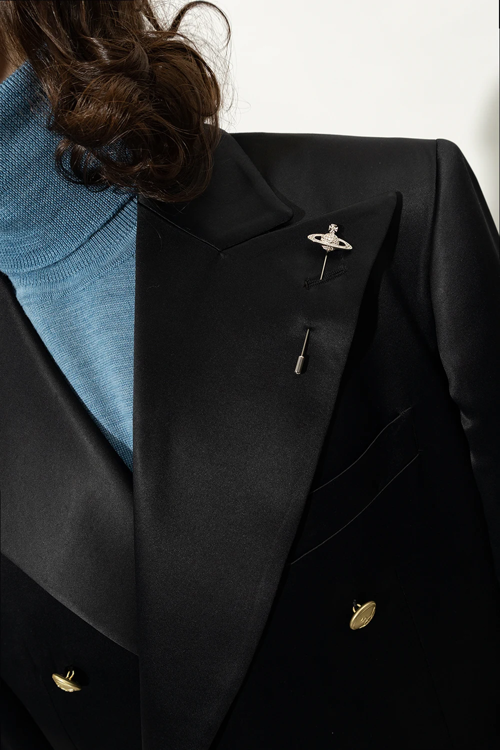 Silver-tone tie clip from Vivienne Westwood. Made of brass, this item features a logo detail and crystals.