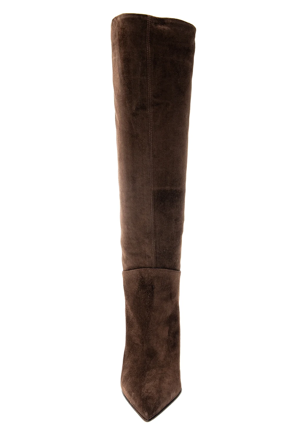 Dark brown ‘Stivale’ heeled boots from Le Silla. Crafted from suede, this style features a pointed toe and a leather sole.
