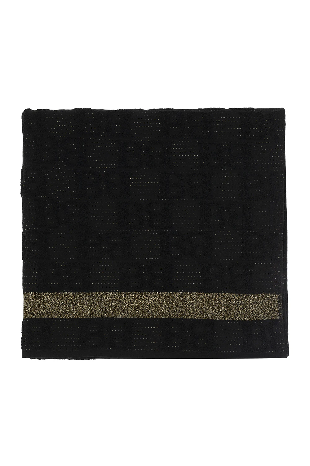 Black towel from Balmain. Made of cotton, this garment is decorated with gold-tone lurex threads and a logo detail.