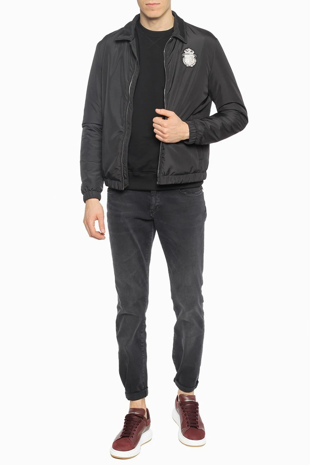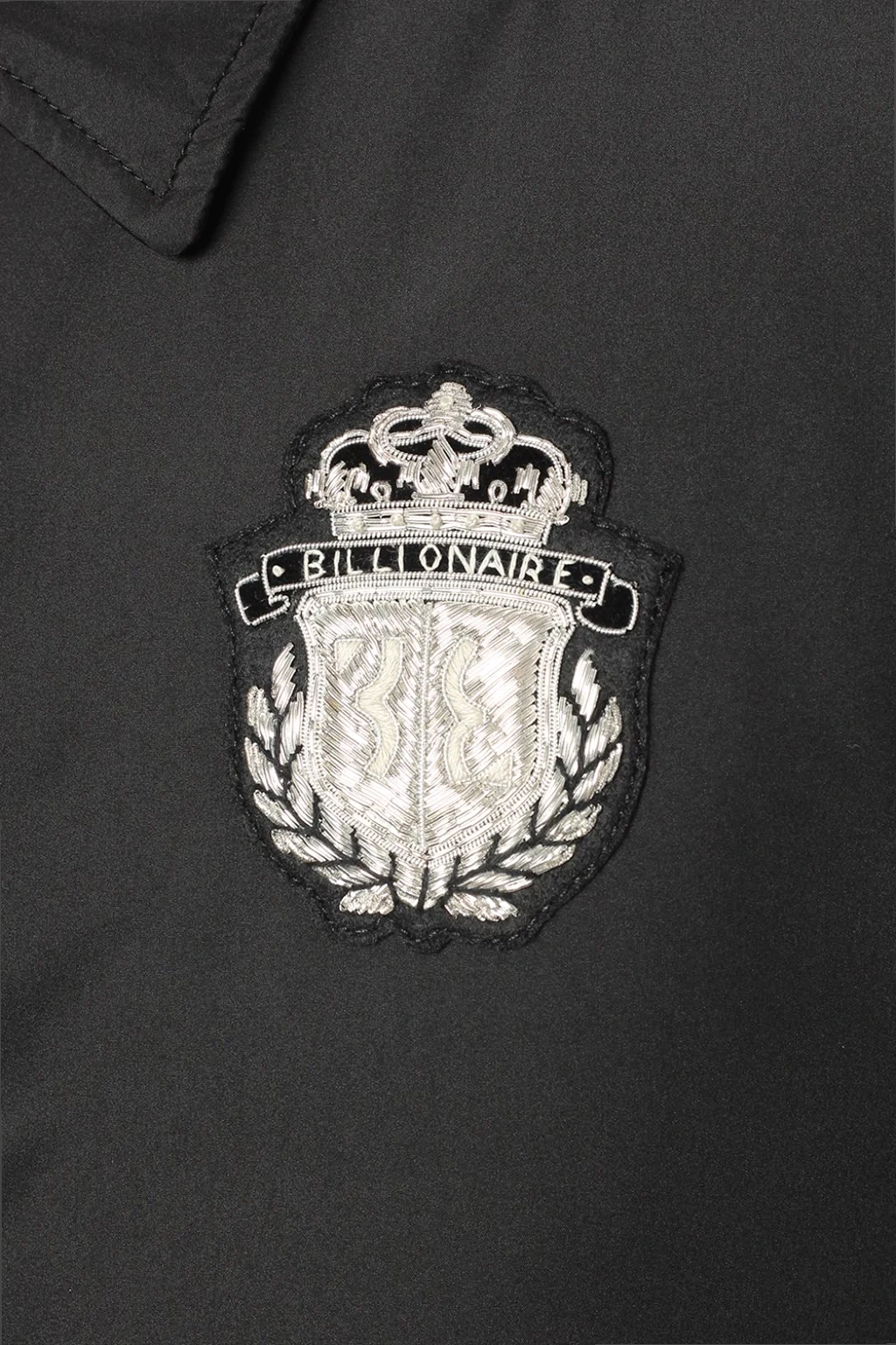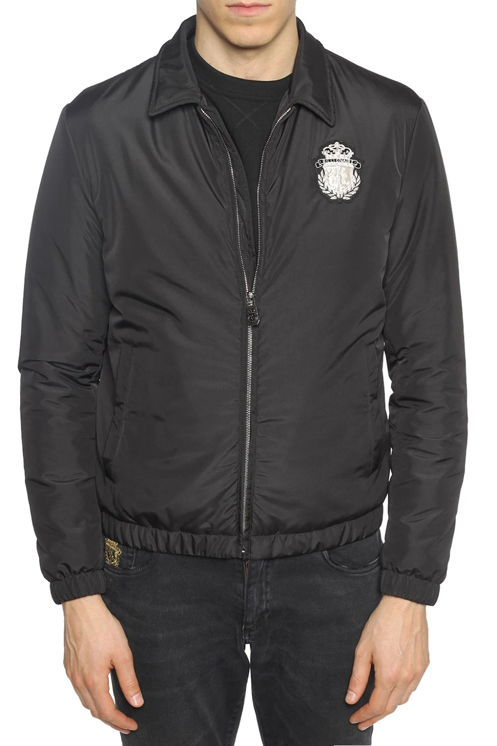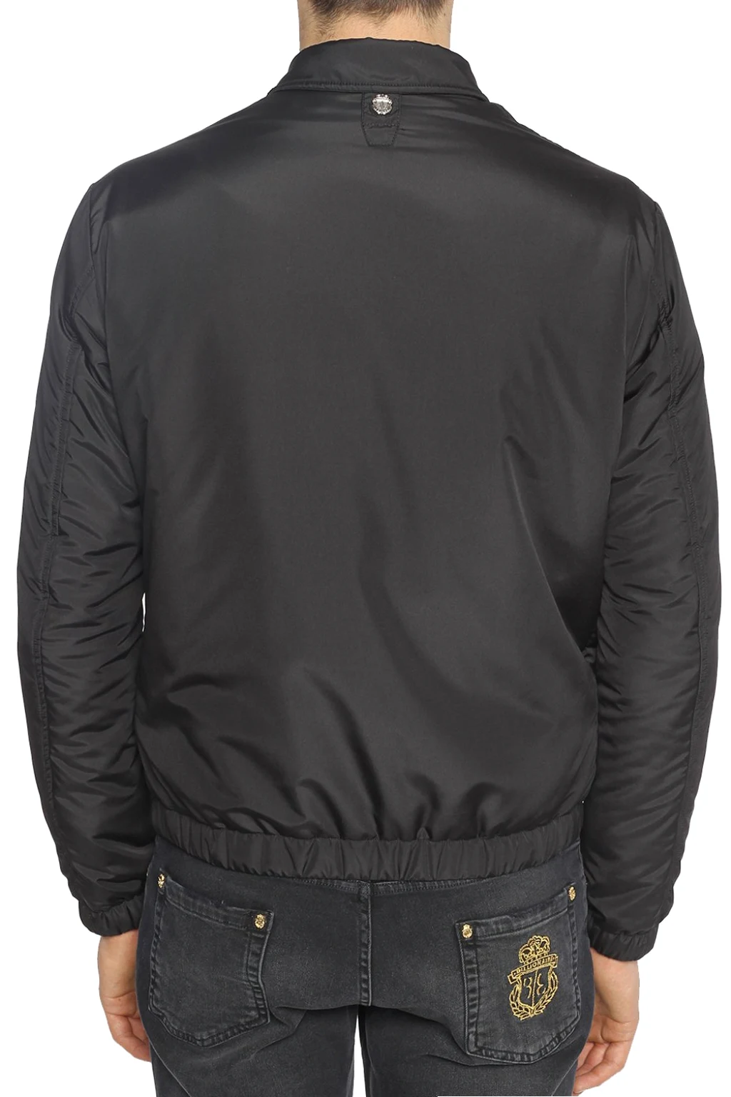 Black 'Faust' jacket from Billionaire. Zip fastening. Patch with signature logo on the front. Long sleeves. 2 snap fastening pockets on the front.