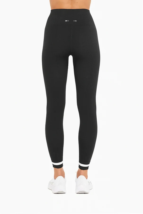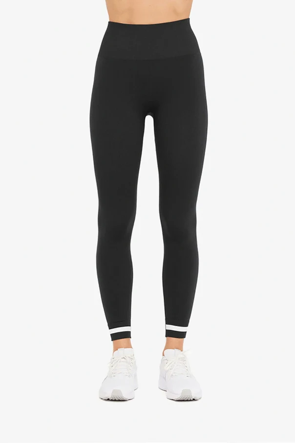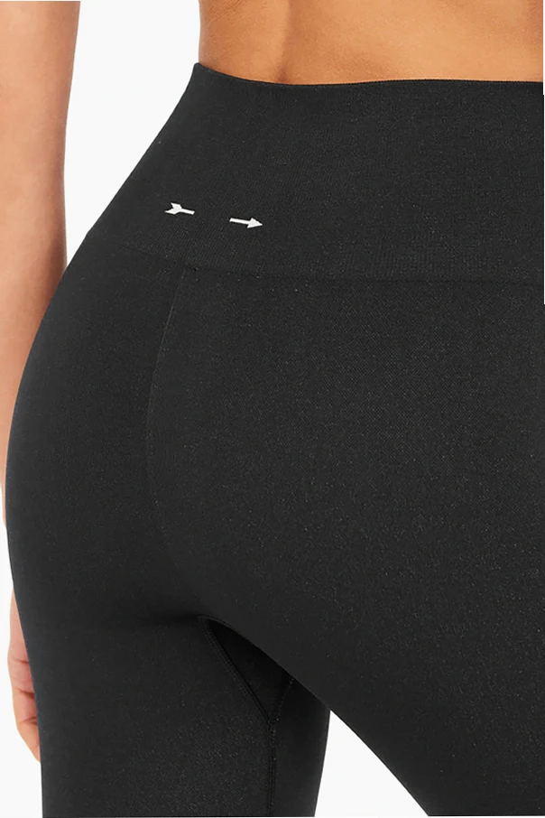 Introducing the "Form" Logo Leggings by The Upside—a paragon of refined athletic elegance from our exclusive sportswear collection. These ankle-length leggings embrace a sleek, figure-enhancing silhouette , accentuated by a high-rise, wide waistband that offers both exceptional fit and sculpted support. Crafted from a smooth, technical knit fabric that unites flexibility with an exquisite "second skin" effect, these leggings ensure unimpeded ease of movement. The understated, deep black palette is punctuated by a single white stripe encircling each ankle, lending a discreet yet sophisticated accent . Subtle dual arrow emblems at the back waistband set this design apart, quietly affirming the exclusive "Form" identity. Why choose this product? Luxurious, high-performance technical fabric Impeccable, supportive high waist with wide ribbing Iconic, minimalist styling with distinctive logo detail Perfect blend of comfort, mobility, and elevated style
