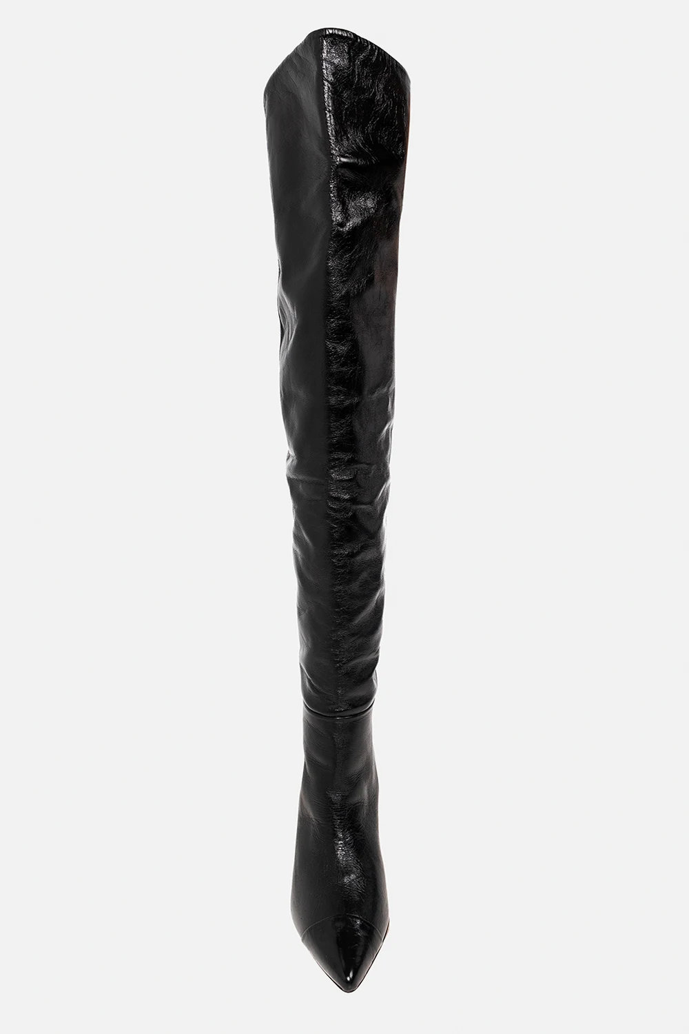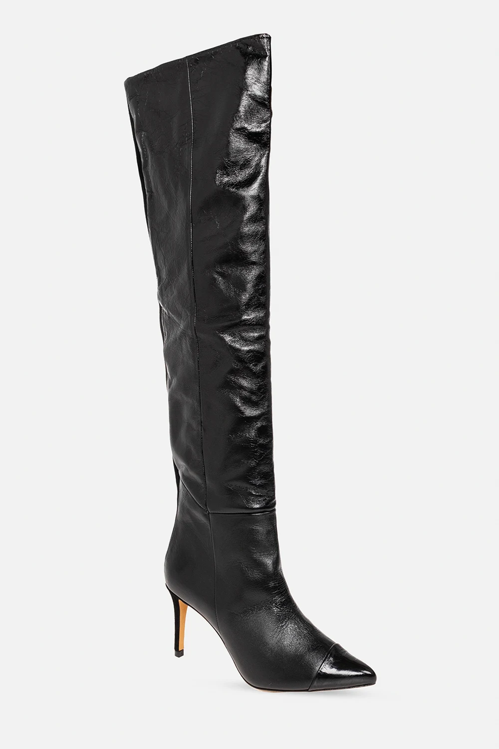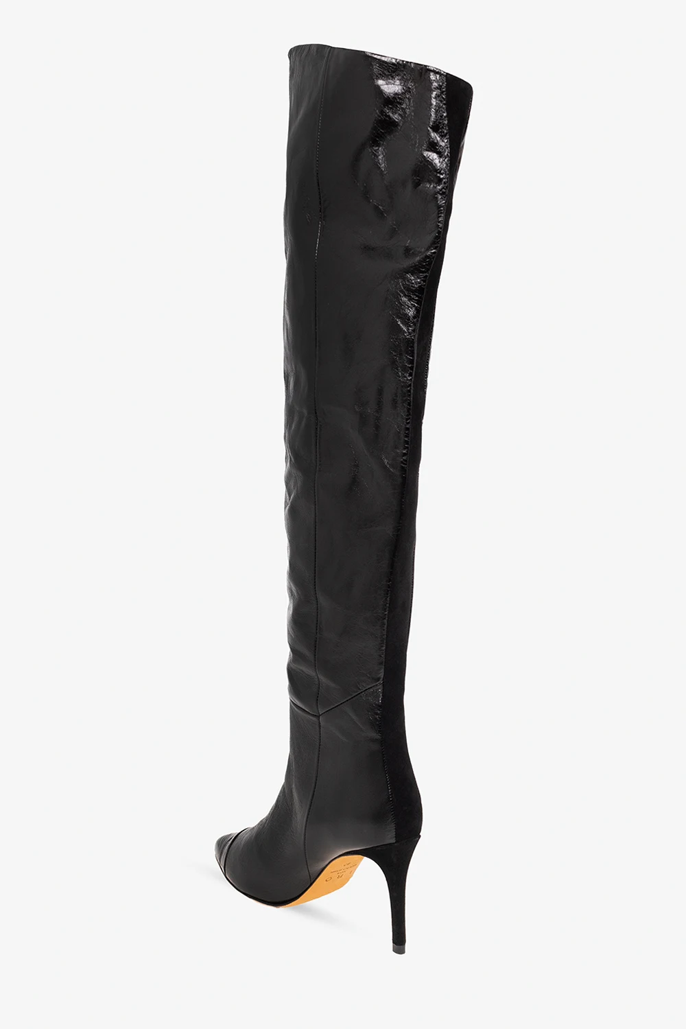 Black ‘Band’ heeled boots from Iro. Made of leather this pointed toe design features a suede insert and beige leather sole.