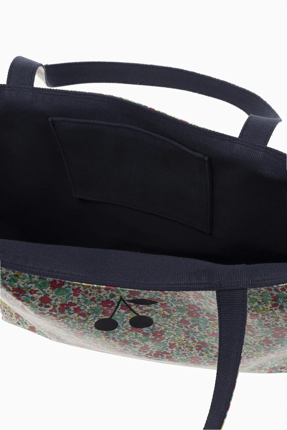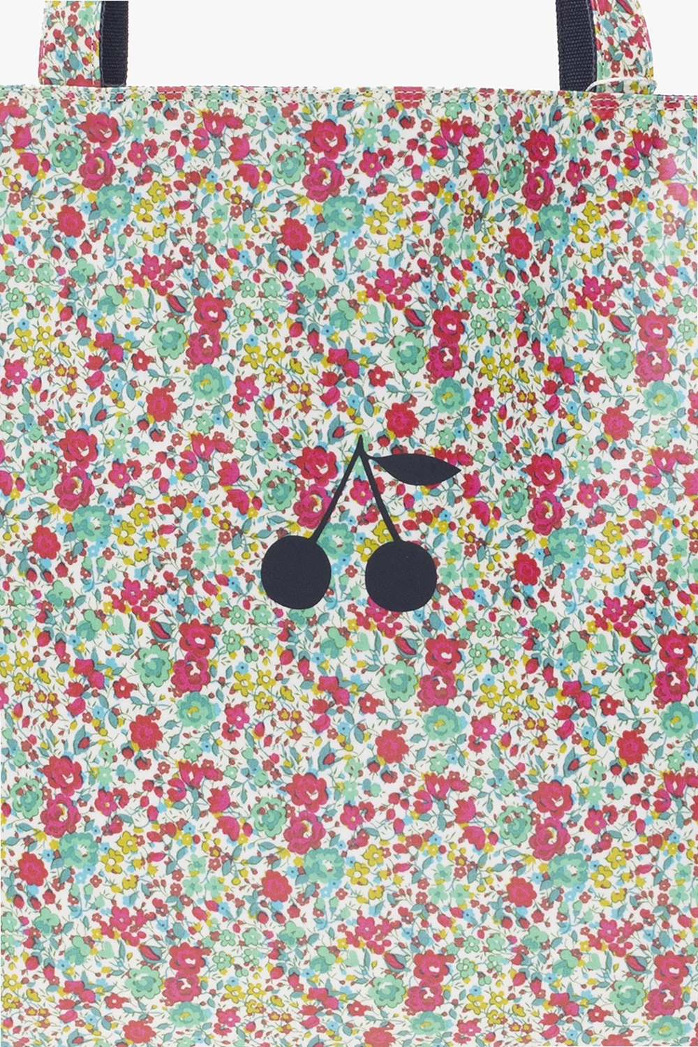 Reversible ‘Newbaggy’ shopper bag from Bonpoint. Made of fabric, this design is decorated with the brand’s signature cherry motif and has two half-round straps. One side is multicolored and printed with a floral motif, the other side is navy and features a slip pocket.