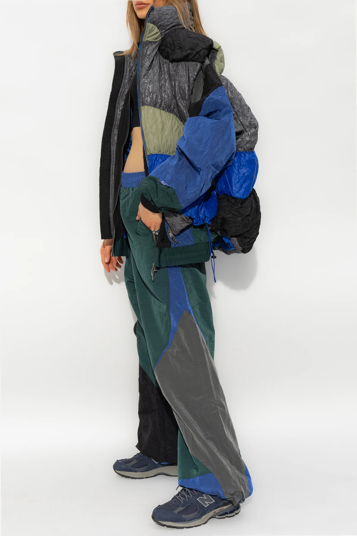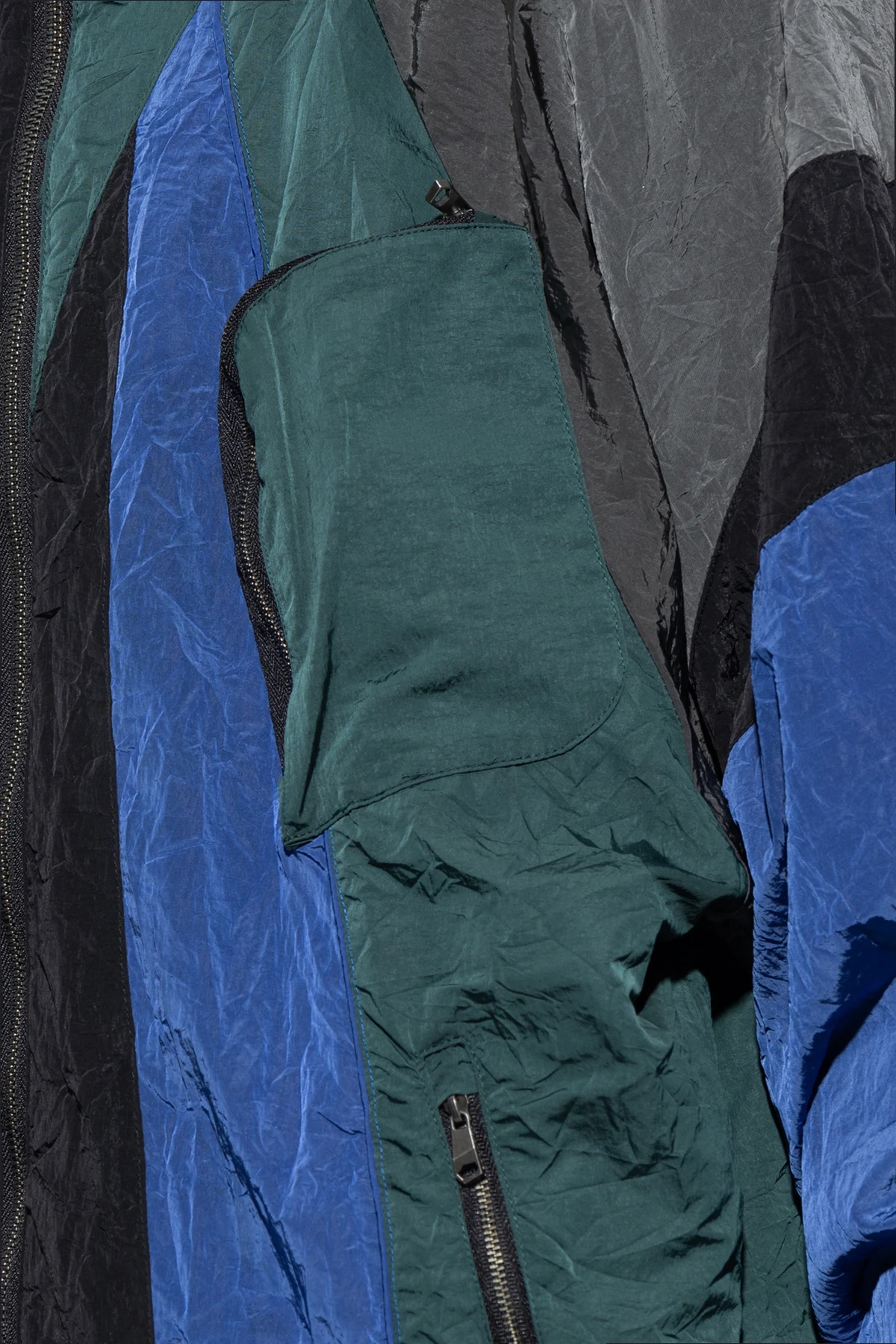 Multicoloured track jacket from Ader Error. Made of pre-creased fabric, this style fastens with a two-way zip and showcases the brand's logo, asymmetrical seams, a standing collar, three zip pockets and elasticized trims on the bottom hem and long sleeves.