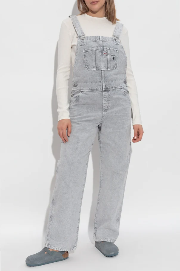 Imbued with effortless sophistication, these jean overalls from Carhartt WIP gracefully reinterpret a timeless silhouette through a modern, exclusive lens. Executed in a luminous, pale gray high-weight denim, the overalls feature a classic straight-leg, oversize cut with adjustable straps, marrying comfort and durability with high-end appeal. The flawless, print-free finish, artfully faded, and pronounced seaming elevate its architectural allure, while the commanding front pocket reveals a refined contrast: a delicate red embroidered accent and a large, signature Carhartt logo patch. Crafted from robust cotton denim, this piece blends American workwear heritage with contemporary elegance. Every thoughtful detail whispers restraint and quiet luxury, exemplifying the brand’s legacy. Why choose this product? Premium, high-density denim for unmatched durability Signature Carhartt detailing and subtle designer flourishes Adaptable, comfort-driven oversize fit An exclusive addition to any modern wardrobe